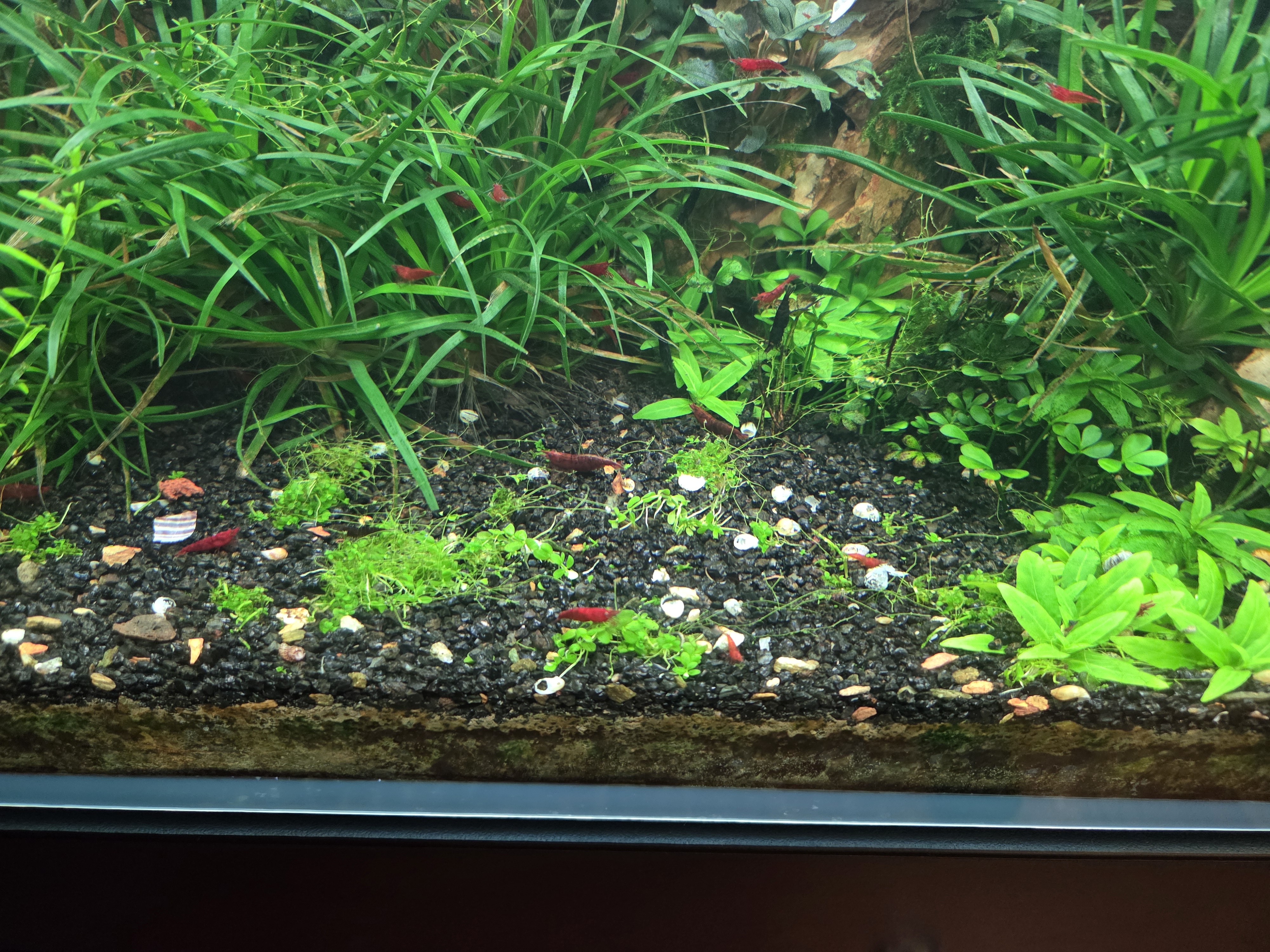 Почистил аквариум. Обнаружил что у меня значительно поднялась популяция креветок, в темноте и не заметил. Их десятка два + точно, а заселял я в аквариум 4шт.