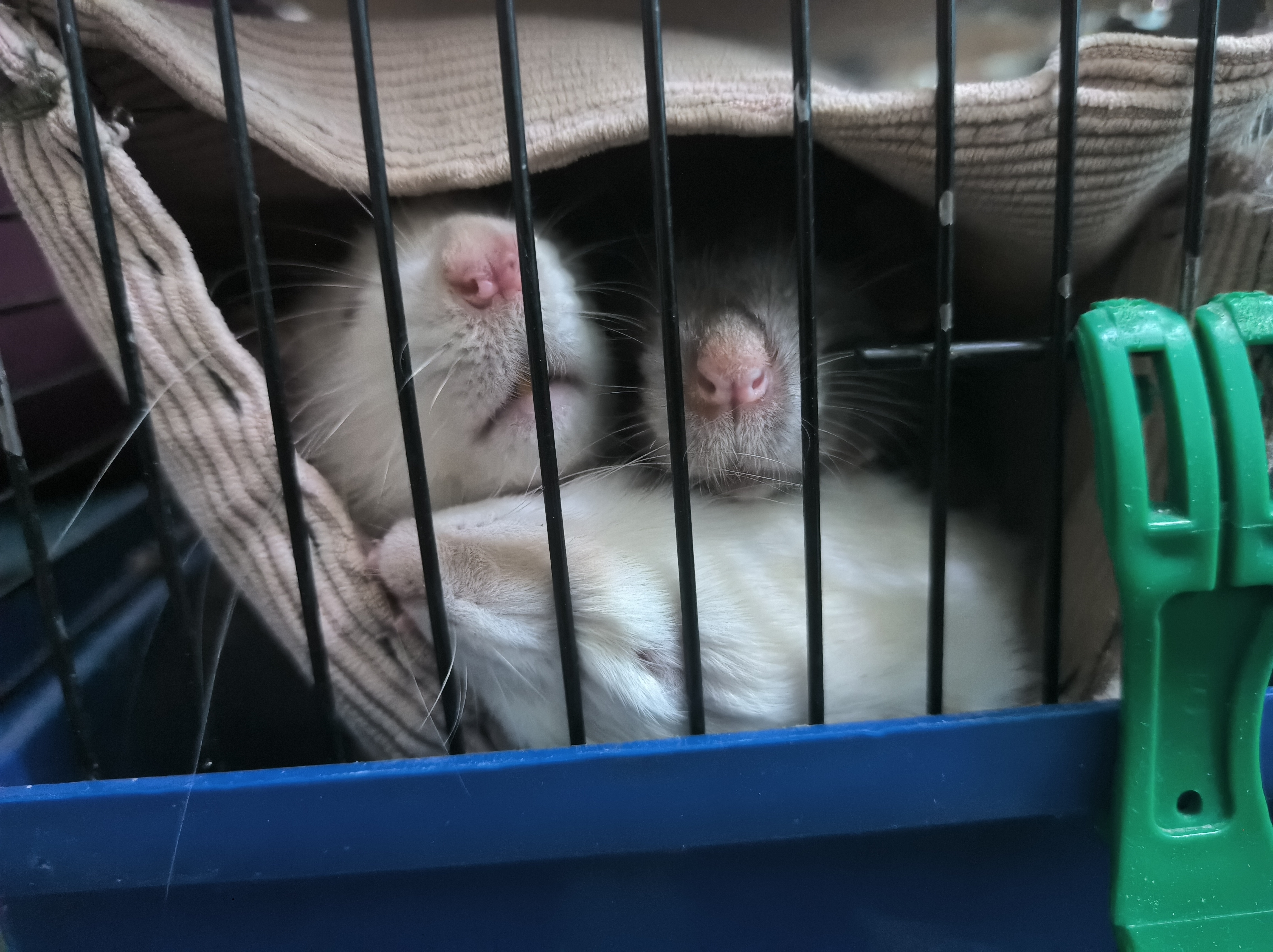 3 фотка если что в карантинной клетке)) старушка живёт отдельно, потому что в большой клетке сложно подниматься на верхние полки, а она очень хочет, и бывает падает. Но они очень часто гуляют вместе, и почти весь день на диване спят.