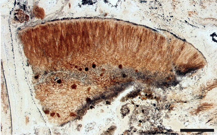 Ученые изучали окаменелости Prototaxites taiti, найденные в горной породе «Райниевые черты» в Шотландии. Внутри окаменелостей обнаружены трубчатые структуры, напоминающие грибные, но их разветвления и состав оказались принципиально иными.