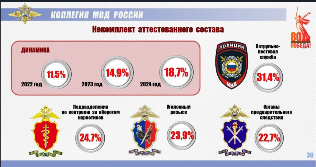 Михаил Пашкин подтвердил, что другая причина увольнений - неудовлетворенность зарплатой. Он добавил, что «года три назад» дефицит кадров оценивался в 30%, но «через пару месяцев будет уже 50%, а потом МВД можно будет закрывать».