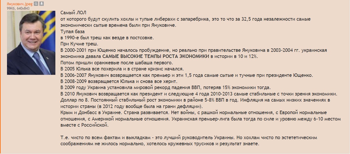 >>1685683 (OP) Я наполовину украинец (мать - украинка) и я коммунист с 14 лет. В моей украинской семье голод затронул буквально никого. Это просто пиздеж и гиперболизация на том же уровне, что ещё в доСВОшные годы правачьчё искало у себя репрессированных предков-кулаков, чтобы этим пидорасам ещё реституцию собственности предъявили. Это явления одного порядка. Поэтому тейки про "в каждой украинской семье кто-то умер от голода" это литералли пиздеж и провокация. Можно просто чекнуть темпы демографического роста на украинушке после "голодомора" и ВОВ - со всеми совокупными потерями численность их населения должна была быть снижена до населения современной Белоруссии, но нет, ровно наоборот, естественный прирост населения перевешивал естественную убыль. Это после 1991 года у них (как и у нас) демография пошла по пизде, но если мы это компенсируем за счёт узбеков и таджиков, то у них даже этого не было. Как итог 35 лет незалежности: из 52 миллионов страны осталось 28 миллионов (и это ещё завышенная оценка). Такие вот проклятые коммуняки, ужас что.