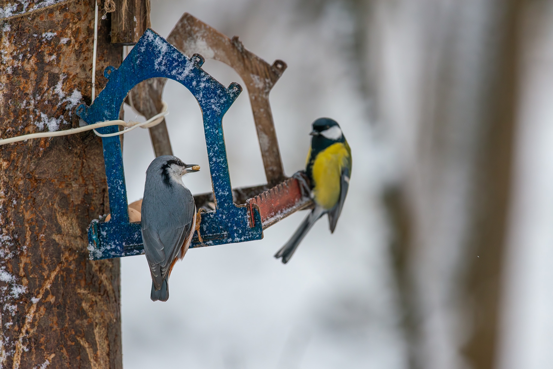 Не понимаю, где вы таких красивых птицев берёте?! У меня на кормушке только синички и воробьи.