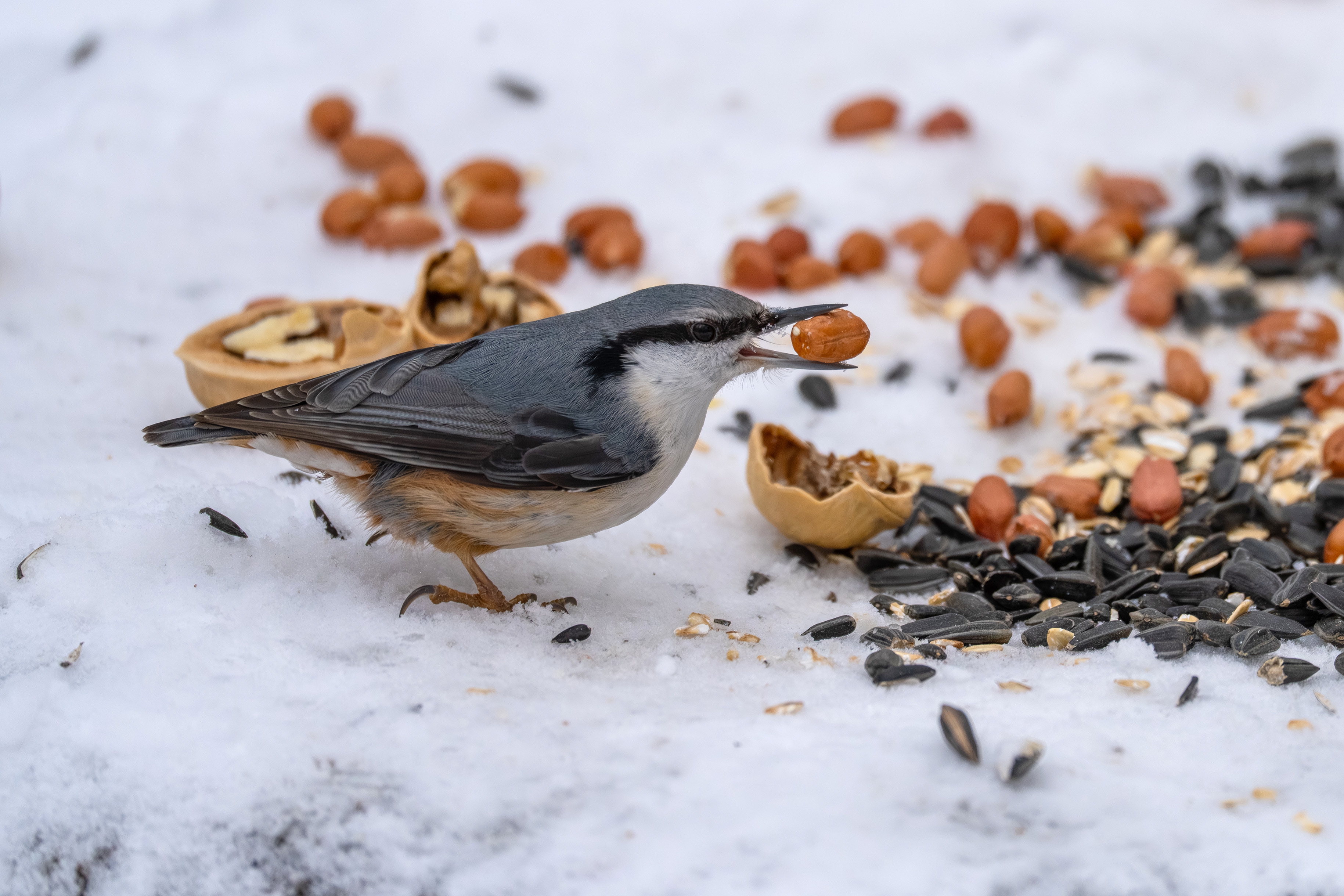 Тоже вкачусь, на утренние прогулки стал брать рюкзачок с телевиком и мешок корма. Сегодняшний улов: запасливые поползни, дефолтные синицы, сойка и среднепестрый дятел.