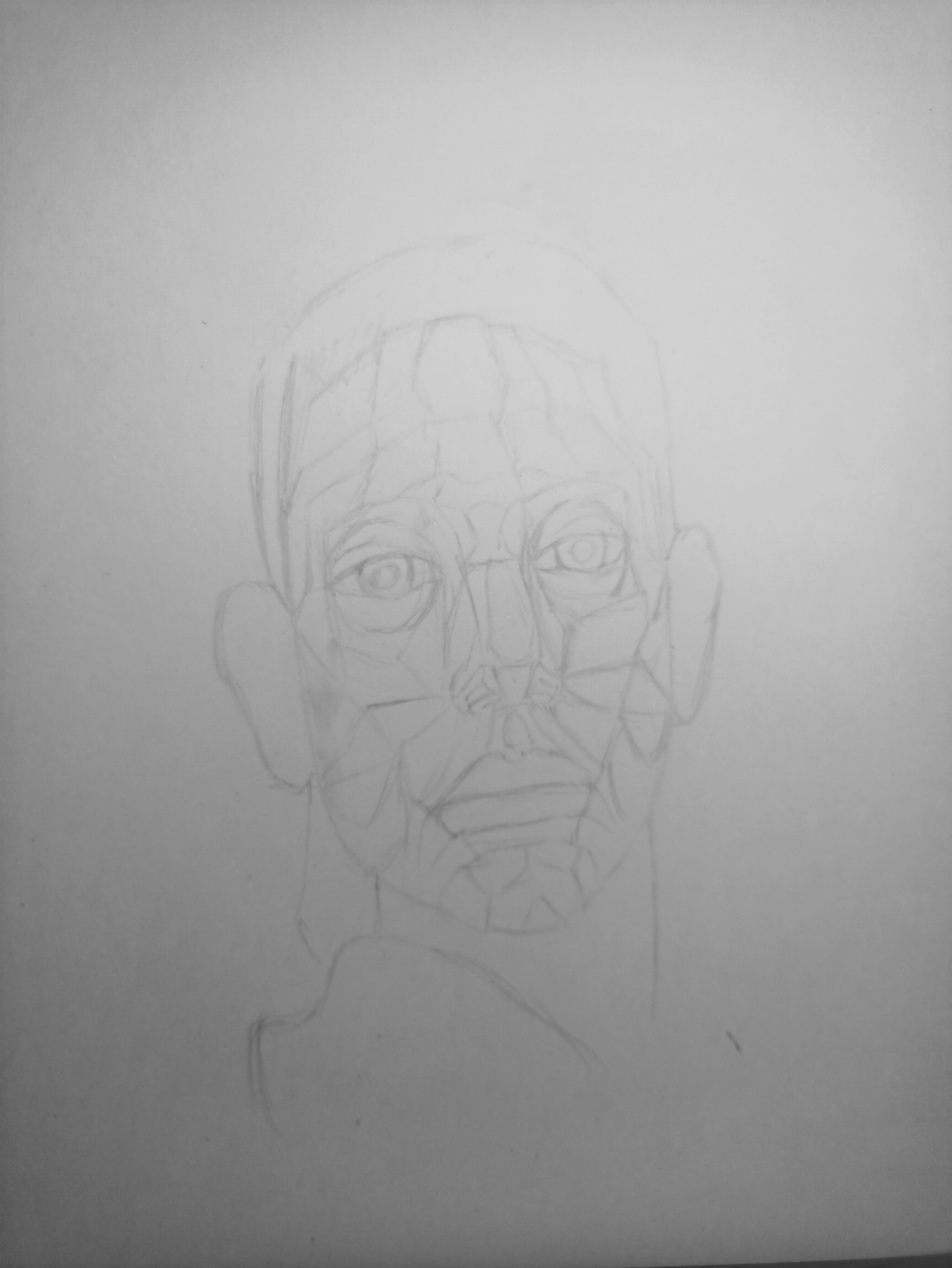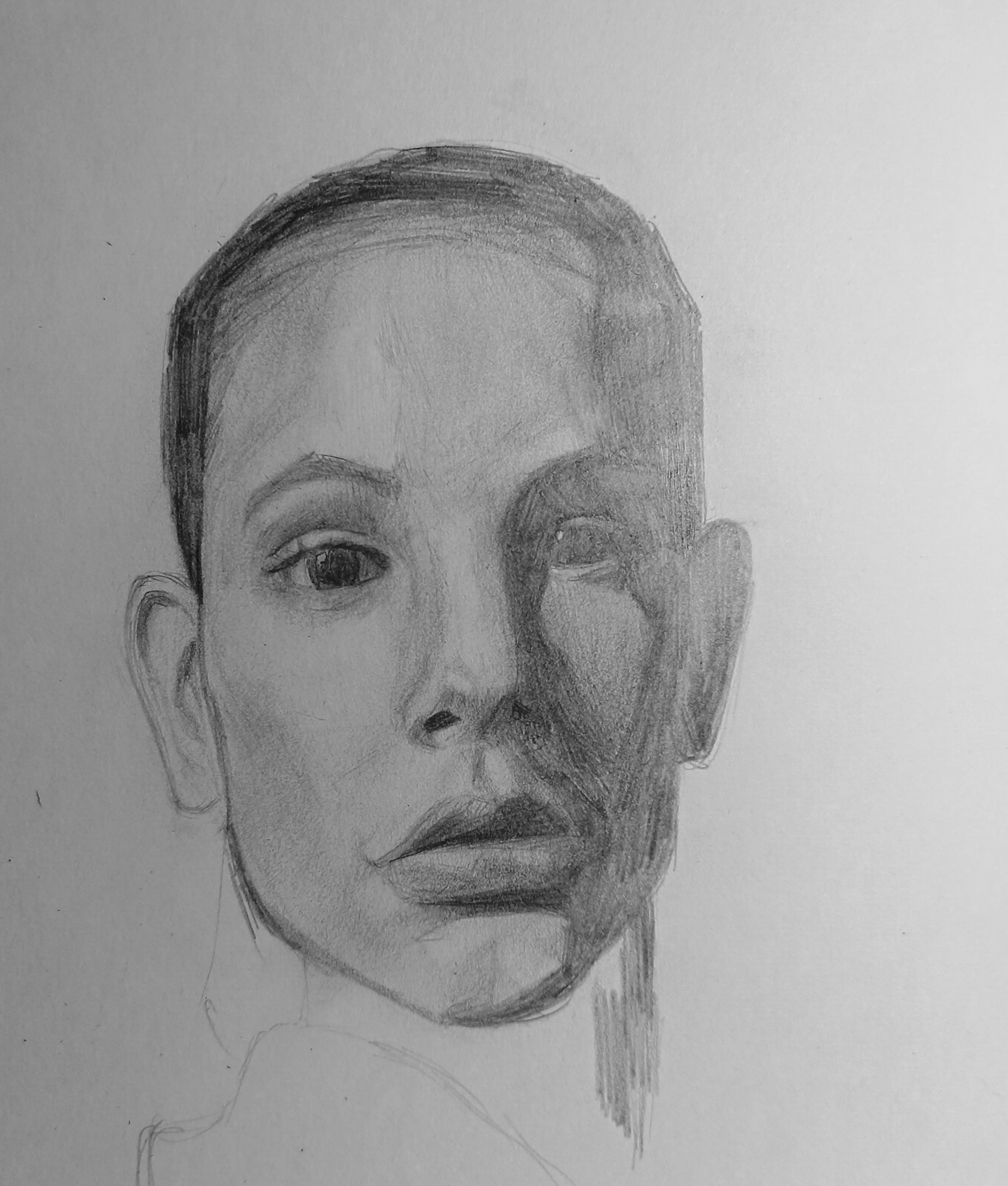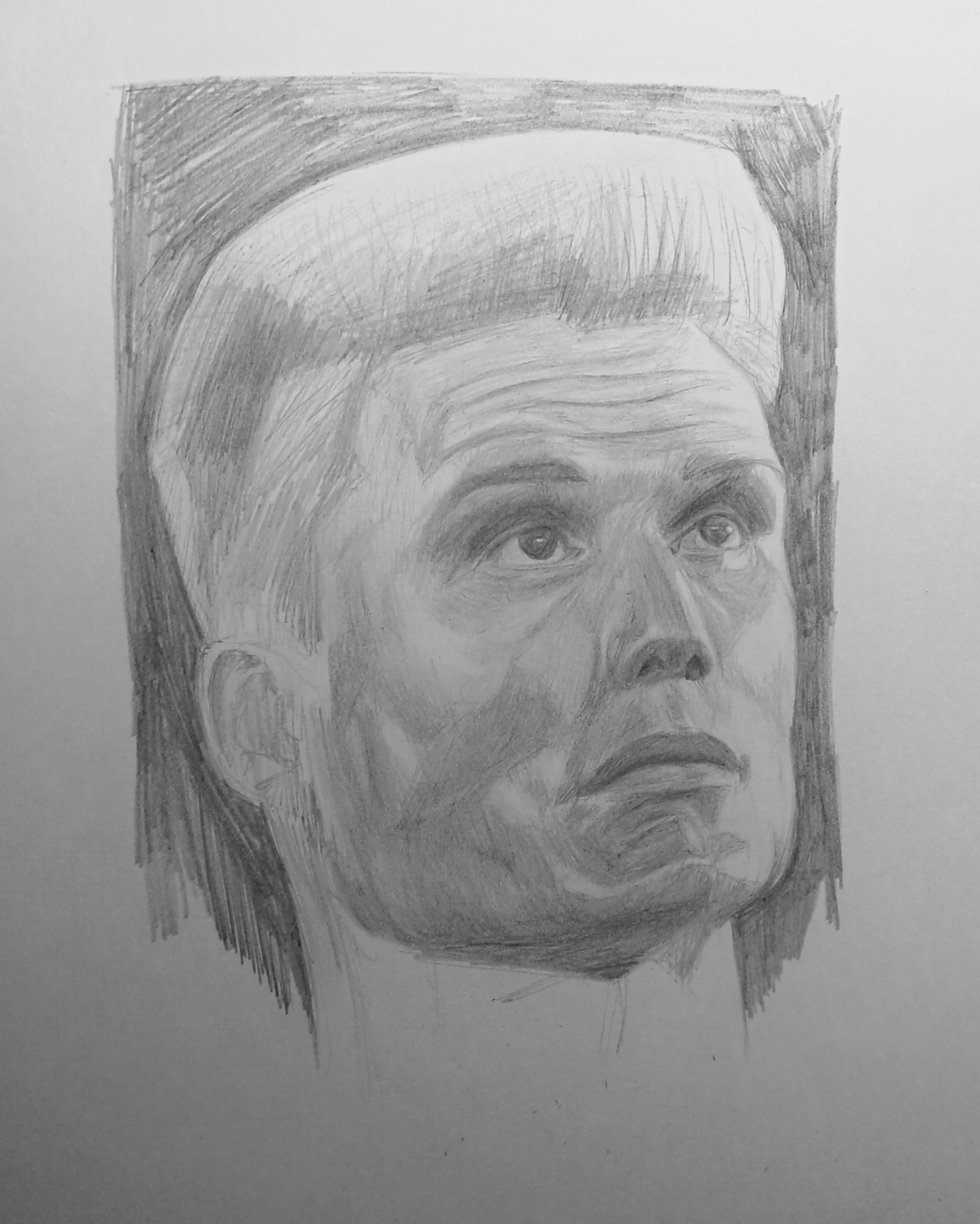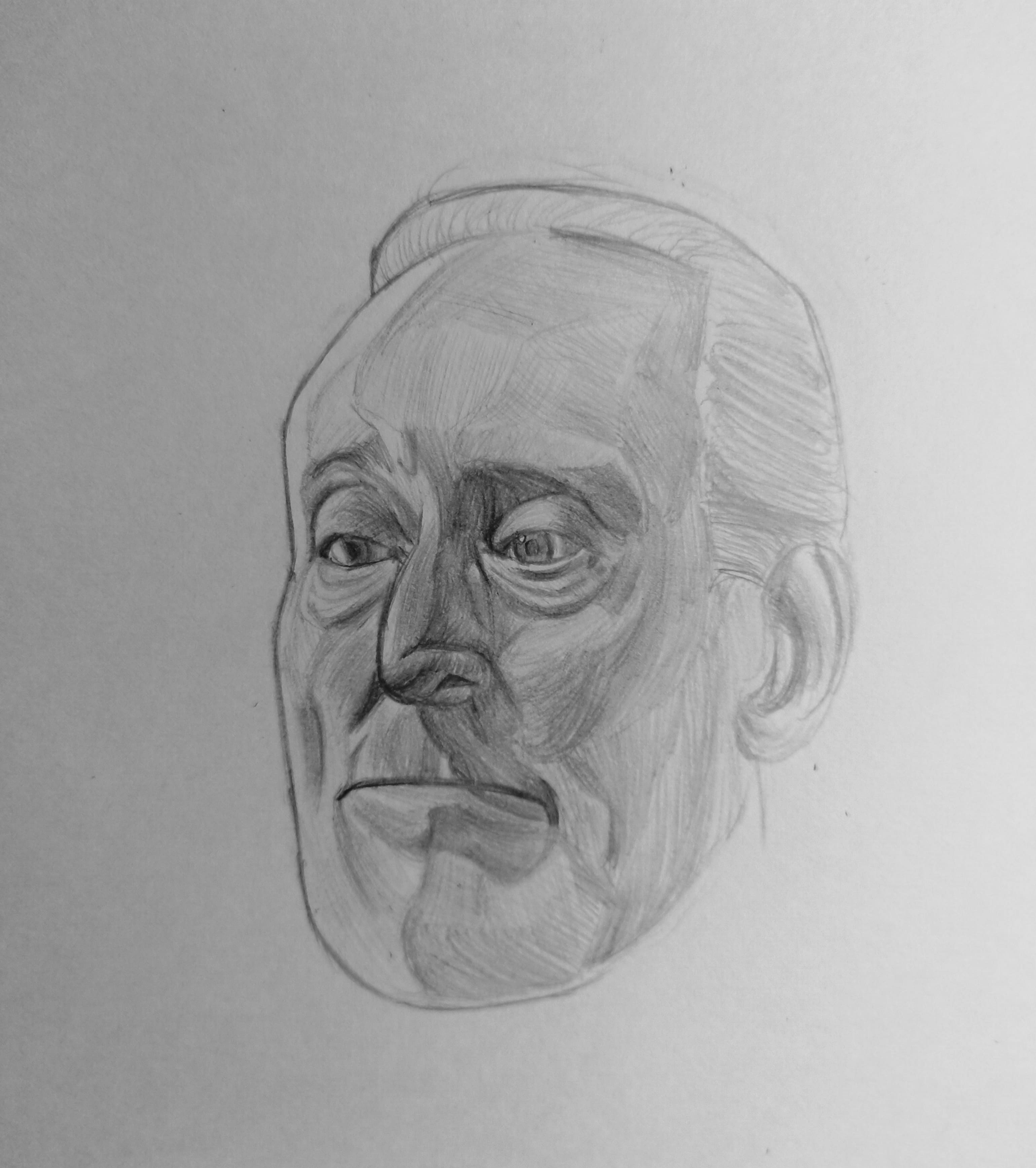 Надо не просто примерно промежутки визированием, а еще и ключевые точки черепа отвесами перепроверять. Слишком слаб у меня глазомер и то что нос длинее я начинаю понимать только когда уже начинаю класть штрих. Ну хоть штрих тренирую по форме