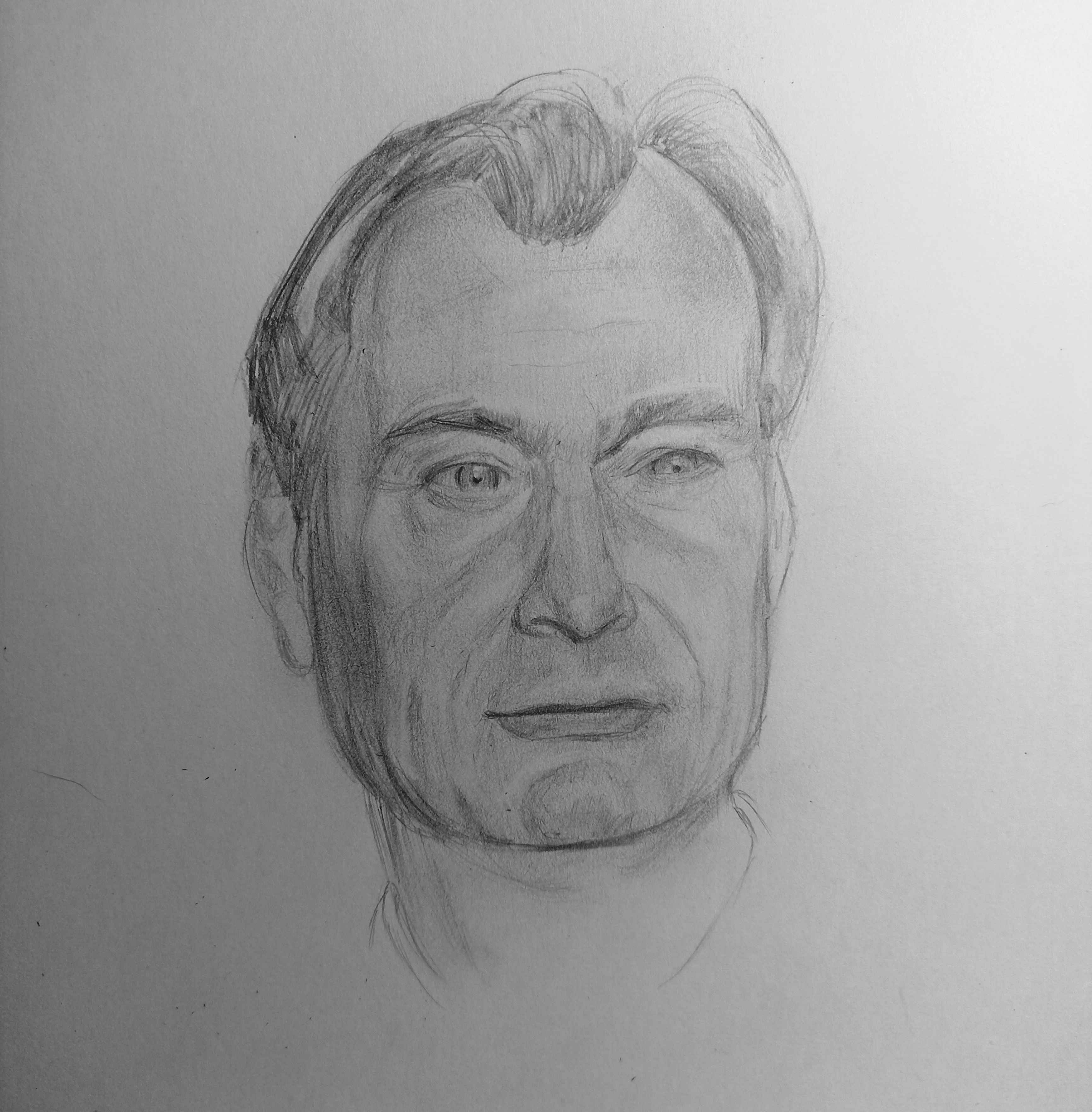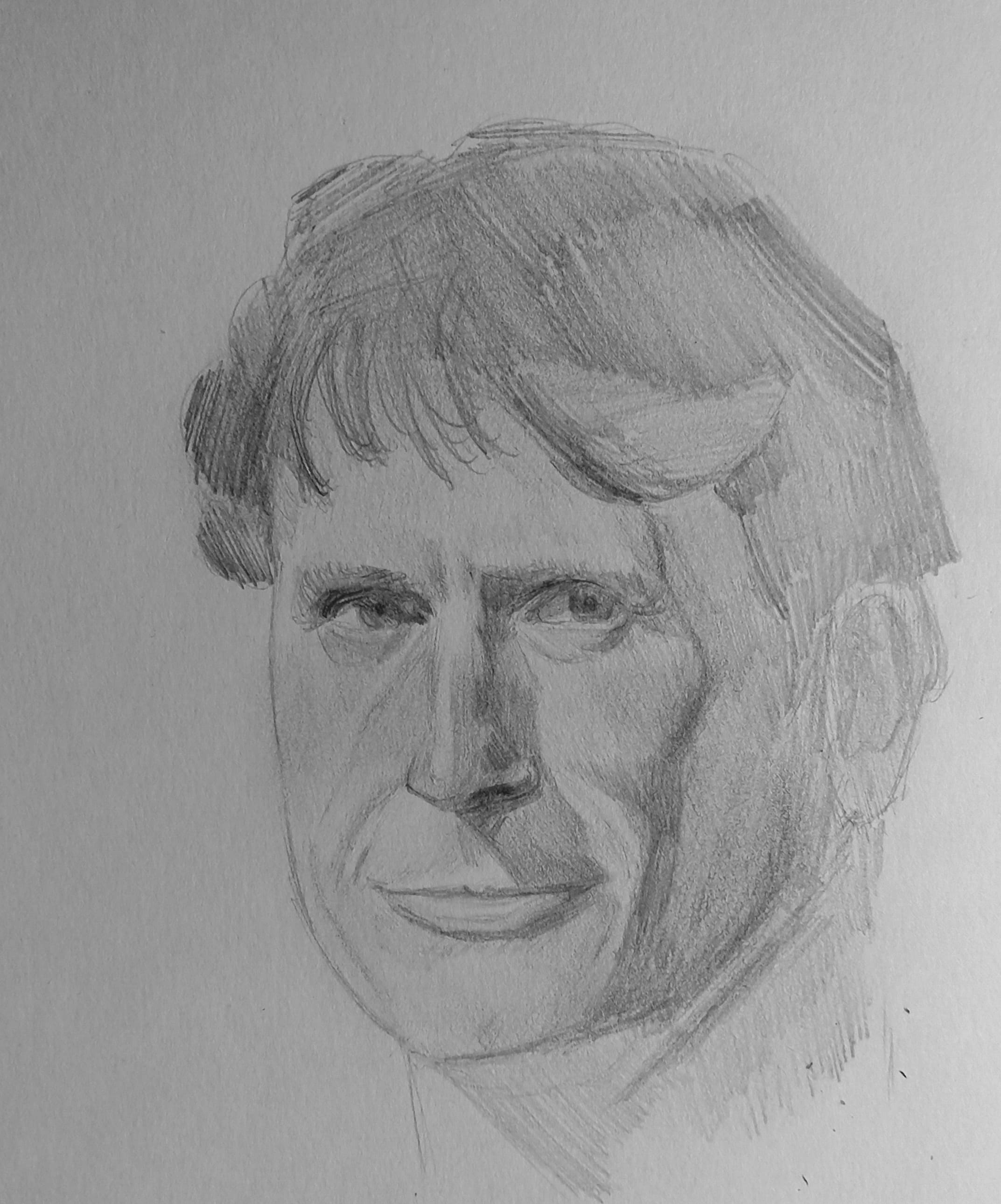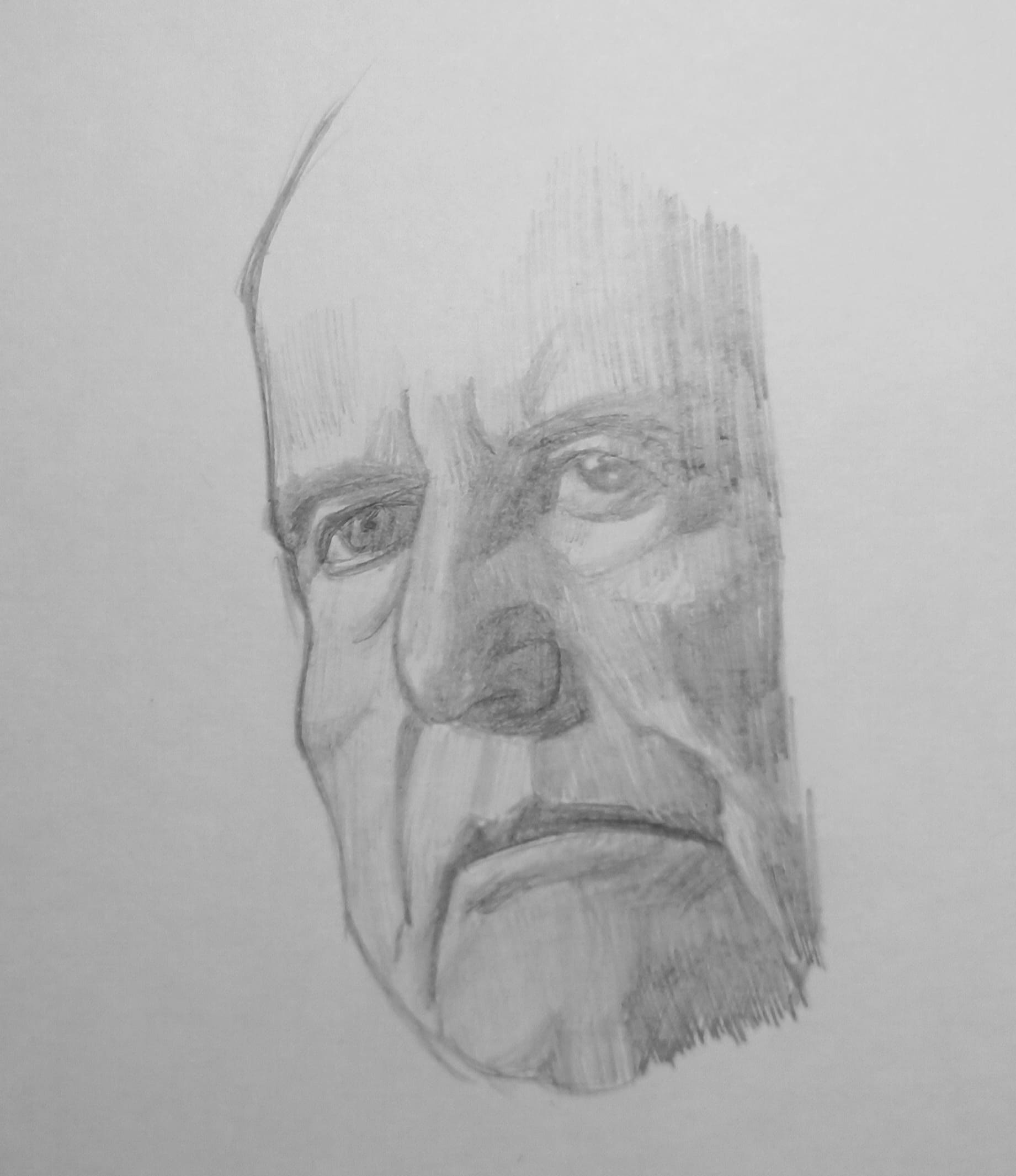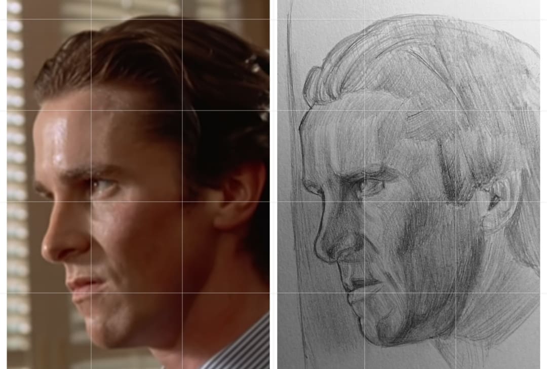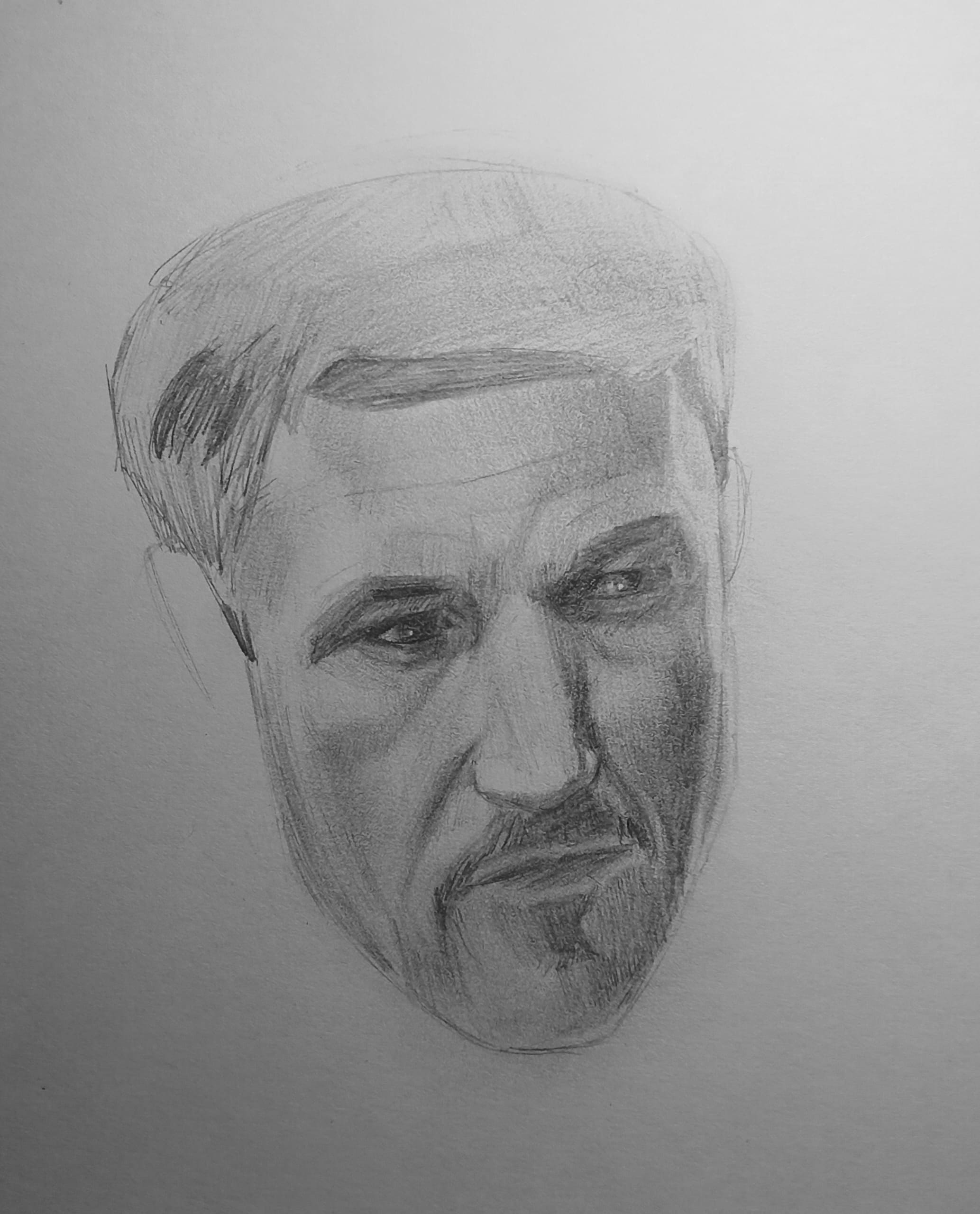 Надо не просто примерно промежутки визированием, а еще и ключевые точки черепа отвесами перепроверять. Слишком слаб у меня глазомер и то что нос длинее я начинаю понимать только когда уже начинаю класть штрих. Ну хоть штрих тренирую по форме