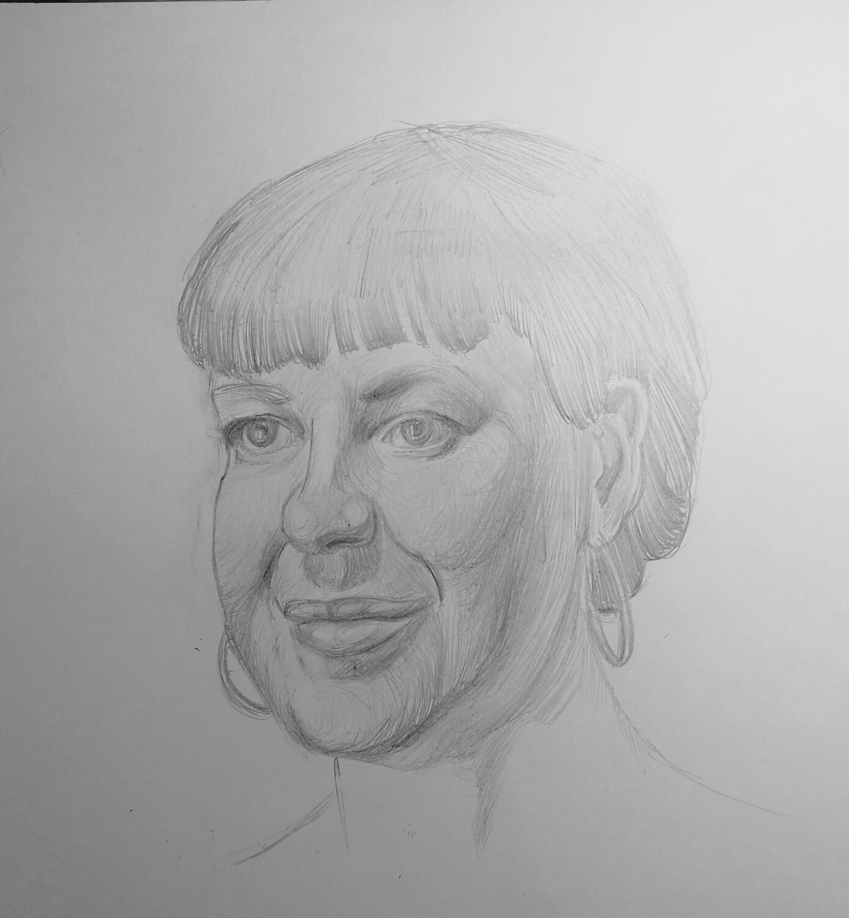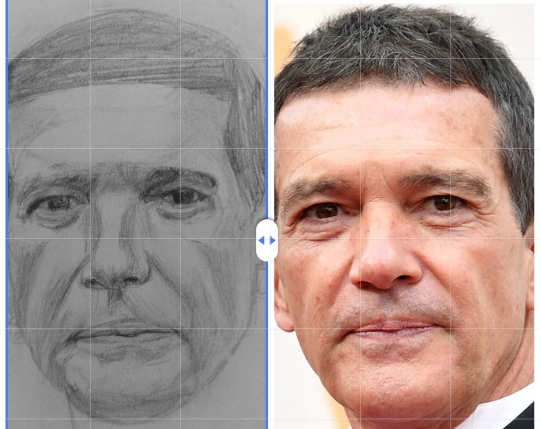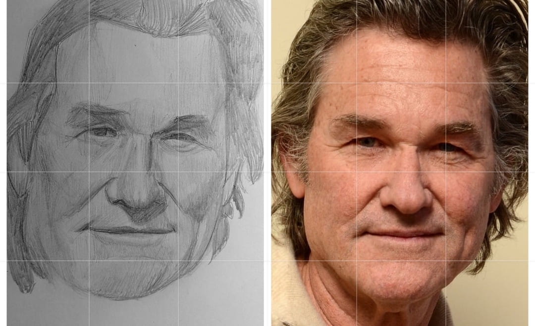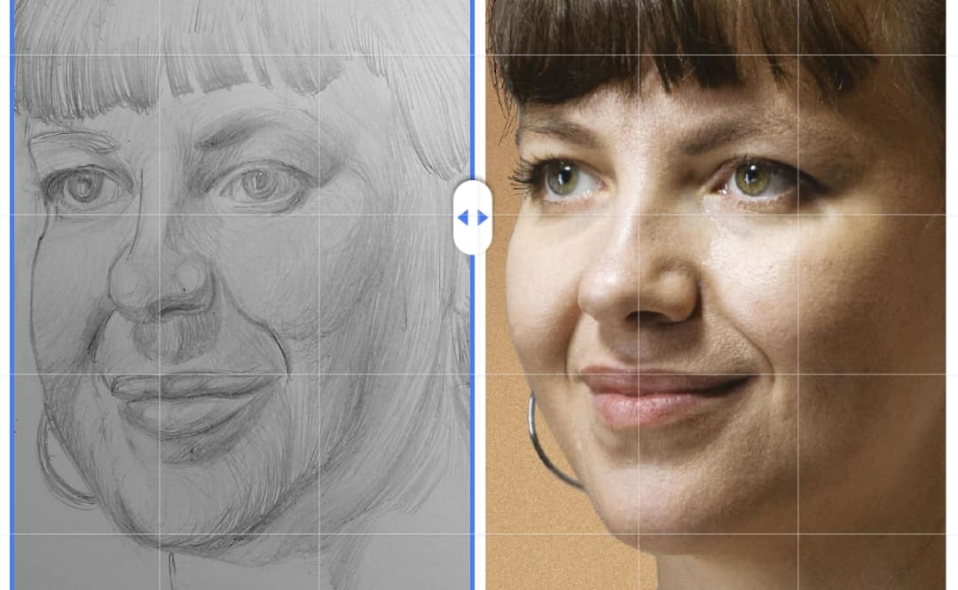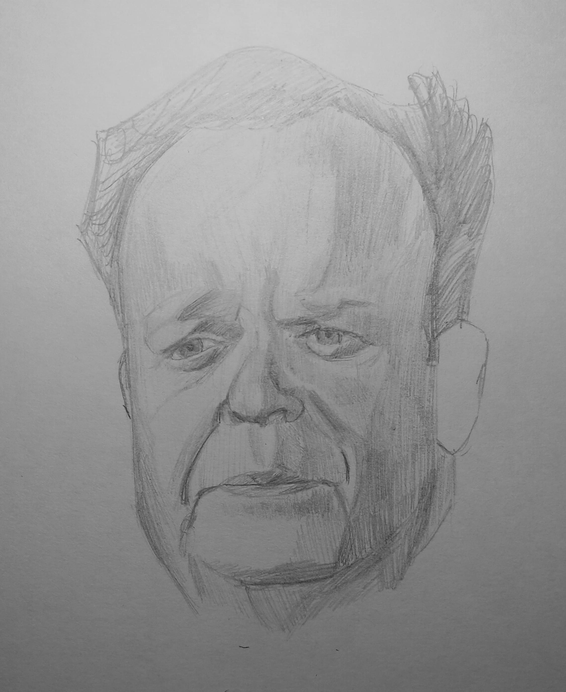 Надо не просто примерно промежутки визированием, а еще и ключевые точки черепа отвесами перепроверять. Слишком слаб у меня глазомер и то что нос длинее я начинаю понимать только когда уже начинаю класть штрих. Ну хоть штрих тренирую по форме