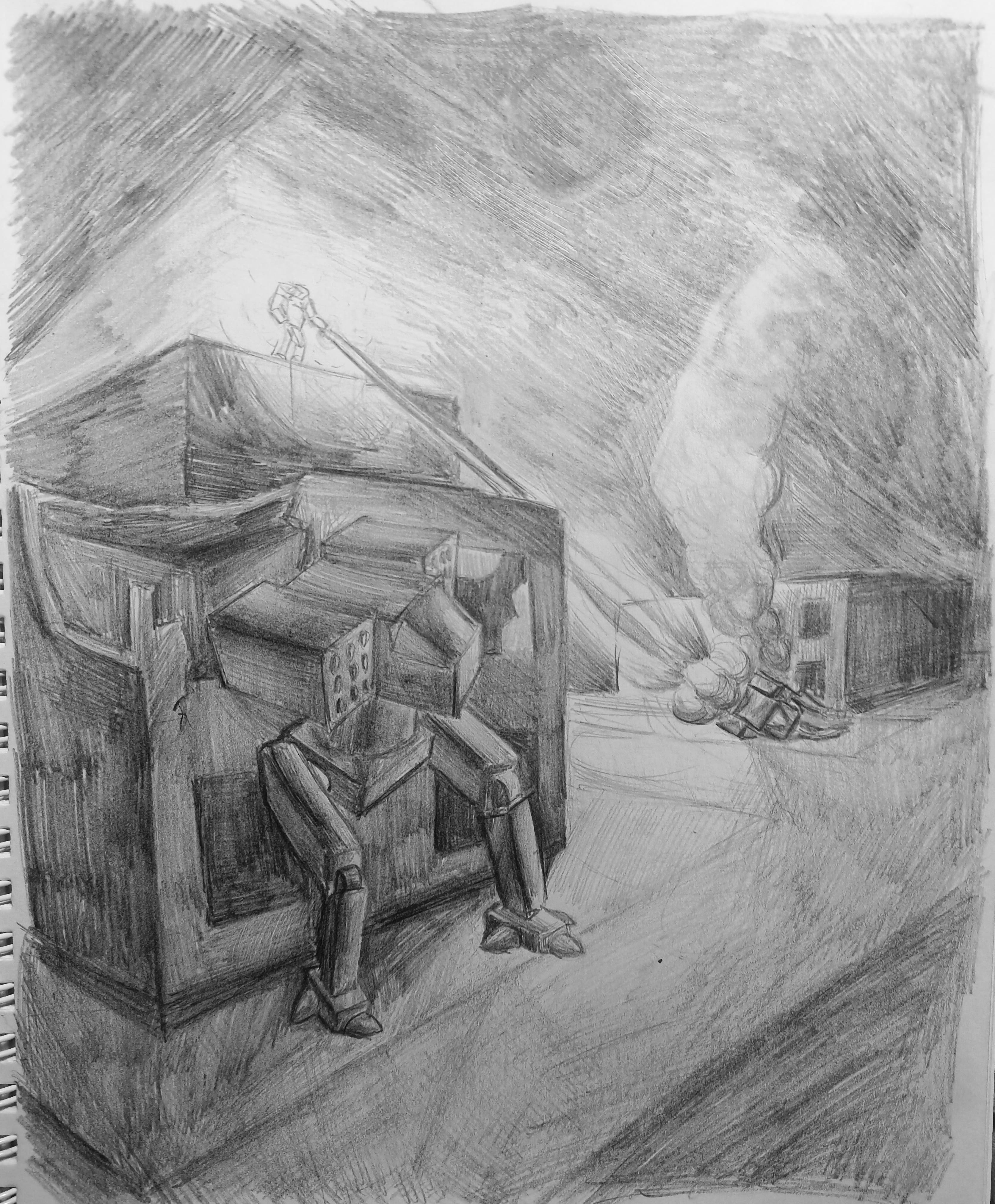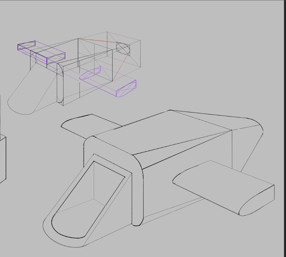 >>922715 → >>923320 → >>923320 → у тебя довольно неплохо получается, и в плане рендера маркерами и в плане композиции на многих кадрах. плюс ты аккуратно машины прорисовываешь и мне нравится как ты хорошо акценты ставишь в некоторых местах есть ощущение что перспектива слегка разъезжается, но по сути с тем что я нарисовал разница минимальна, я скорее всего более кривое нарисовал даже потому что толком не проверял ничего и делал на глаз. просто старайся следить, чтобы была осевая линия вдоль всей машины и чтобы расстояния от этой осевой были с обеих сторон одинаковые, у тебя получилось например что дальняя сторона лобовухи чуть шире ближней, по перспективе чуть чуть больше должна быть ближняя часть тут очевидно что нужно робертсона навернуть, он буквально при рисование такого и аккуратное простраивание насквозь. скетчинг про то как промышленные предметы рисовать и потом маркерами выделять, это тебе тоже поможет и руку поставить на симметрии в перспективе и маркерами рисовать