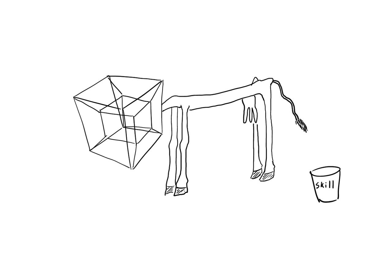 Если что, разница в рисовании кубов 4/10 и 10/10 - это не 250% улучшение, а примерно 1000-2000% из-за нелинейности в разнице между десятью условными рангами скилла. 1/10 - это порвать бумажный лист двумя руками , а 10/10 - это порвать металлическую пластину такой же ширины и высоты, но которая толще в 5 раз.