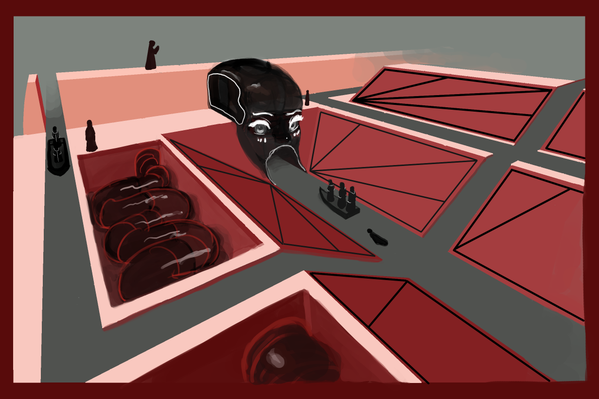 Но это ведь не всё что мы видим. А что мы видим? Ну тут словно бы должна быть оппозиция между углом где зеленый всплеск с остальной красной частью. Может типо там изображен союзник а все остальные враги? Я не ебу, выглядит как визуальный мусор.