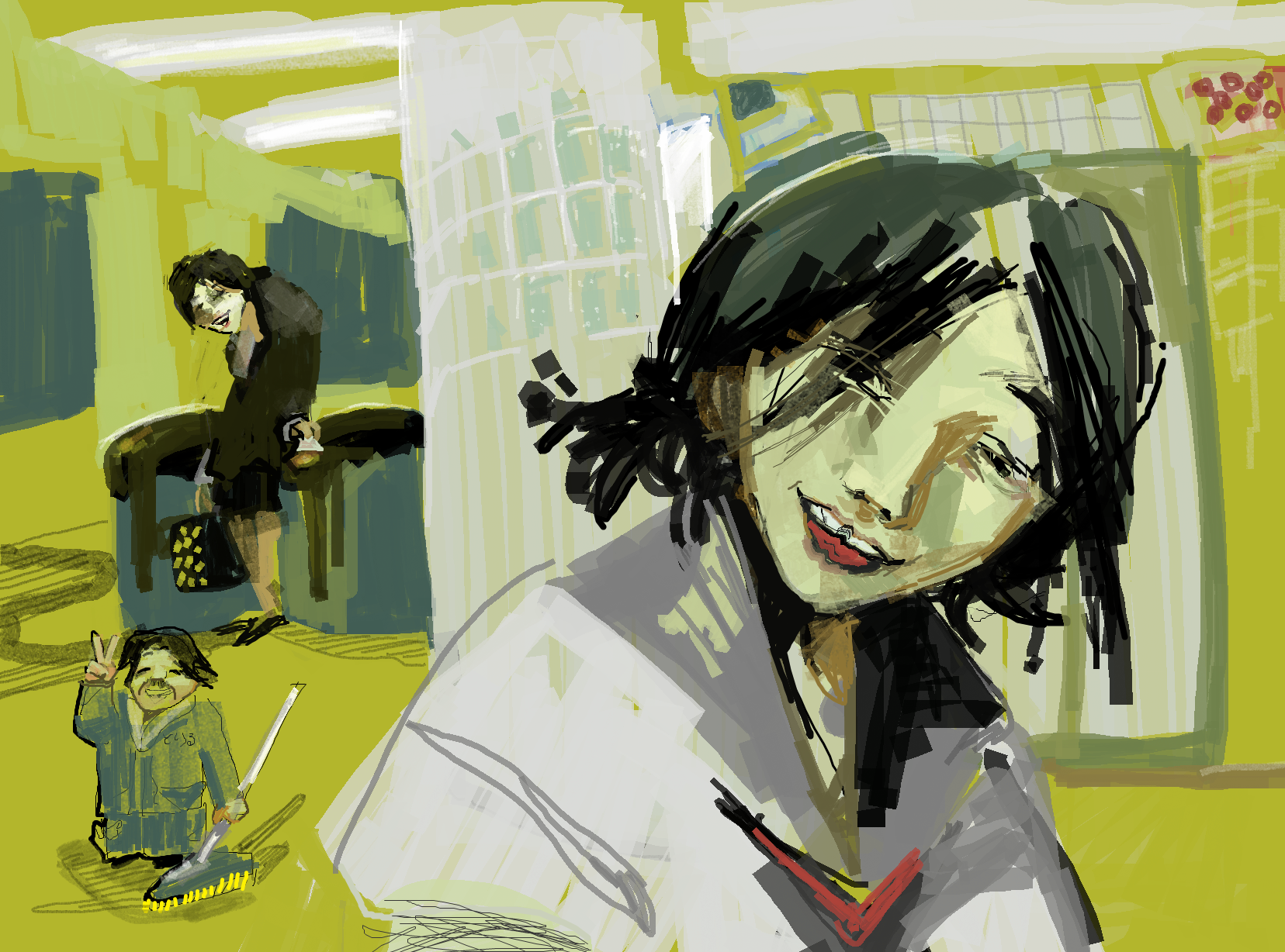 >>925300 Ну, я заметил некую черноволосую девочку с красными глазами в предыдущих работах. Тут вроде тоже она. Но в целом не видно большой любви/привязанности к какому-то персонажу.