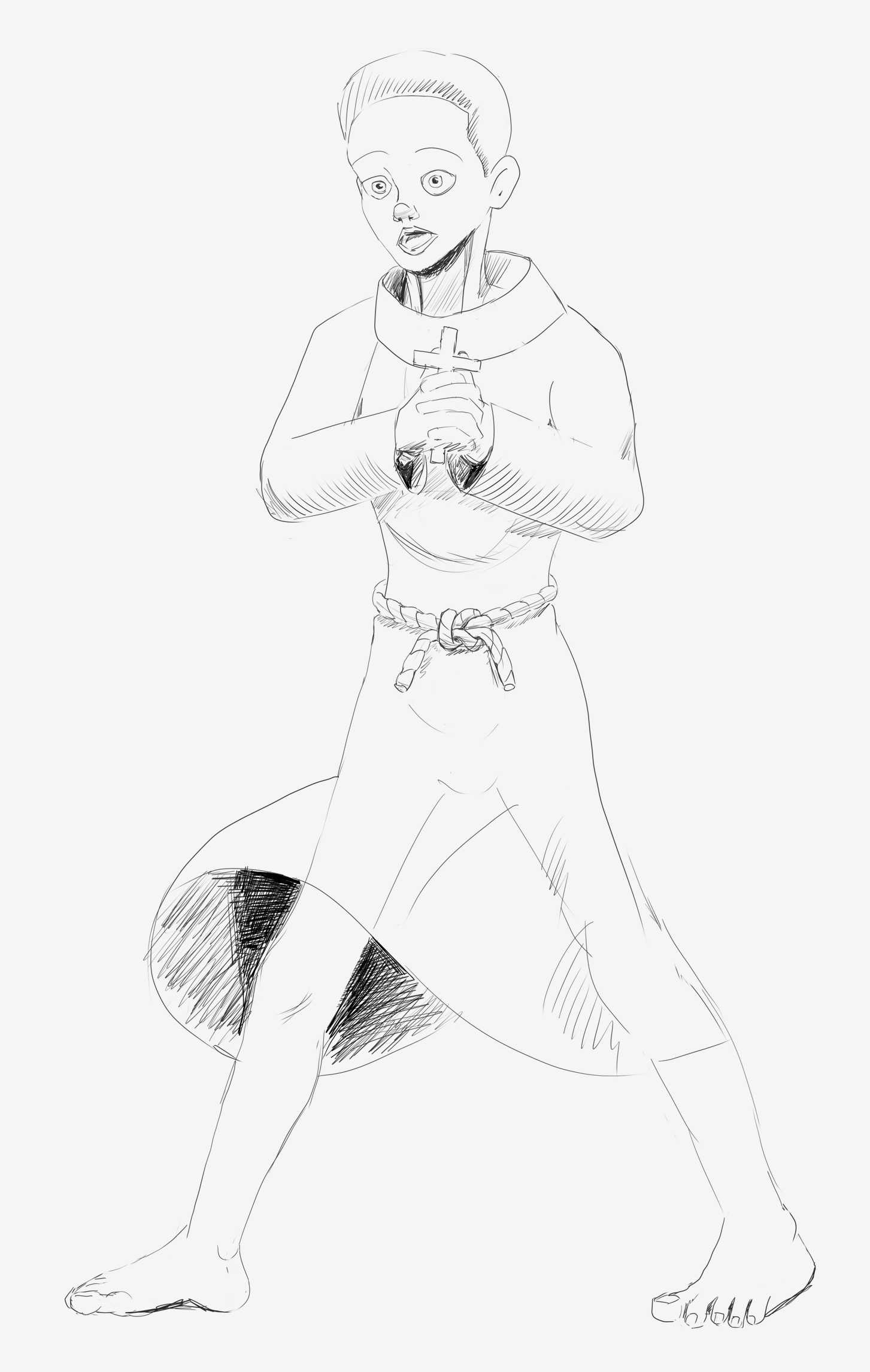 >>923832 Когда скетч мышкой калякал почему-то вышло перспективой и пропорциями лучше чем когда сидел с прикушенным языком выводил торс по центральной линии. Вместо утрированной перспективы с "ногами в ебало" снизу-вверх получилось почти-то приземление на четвереньках.