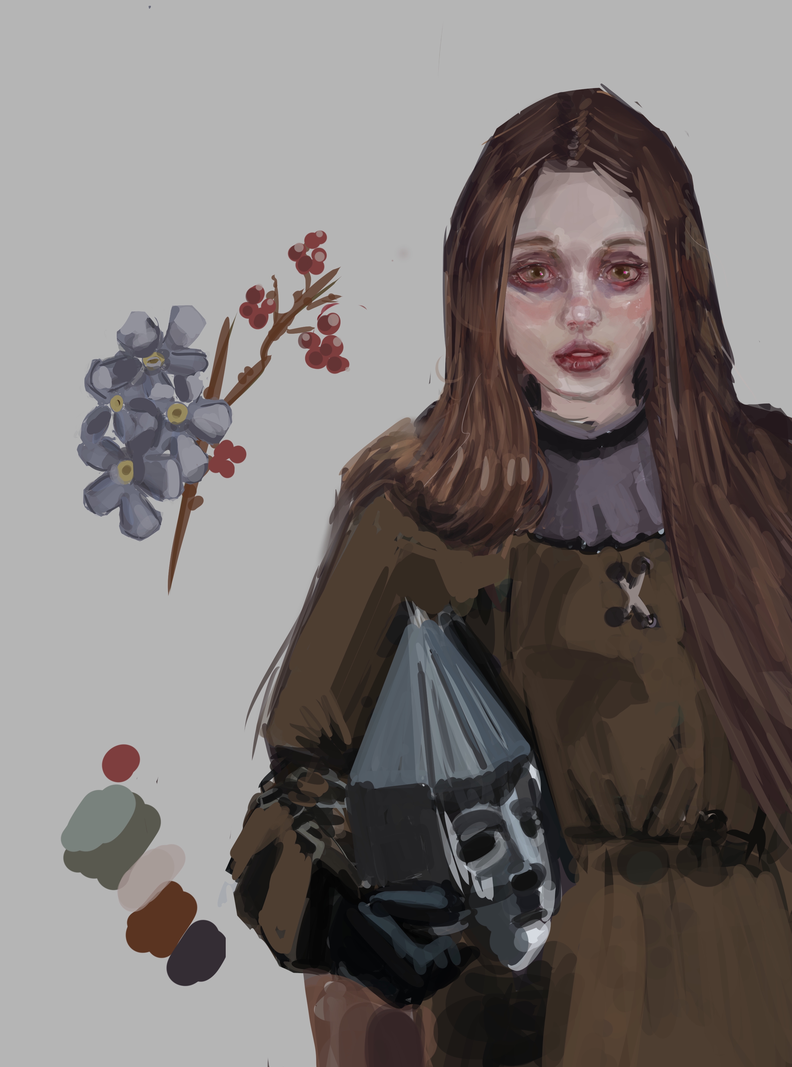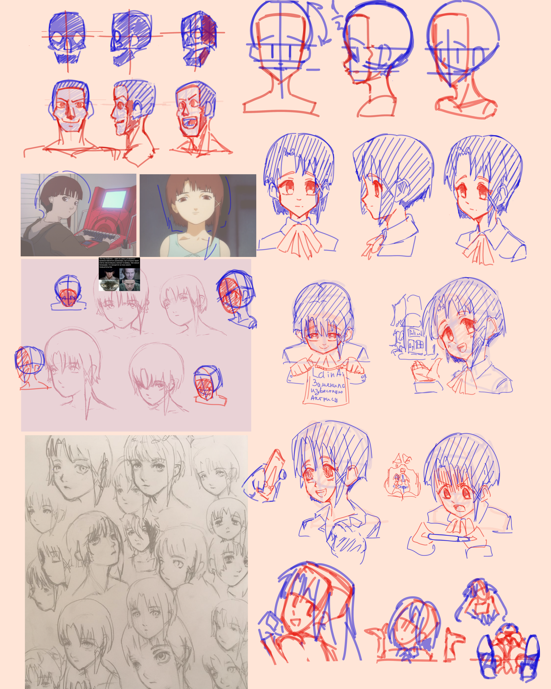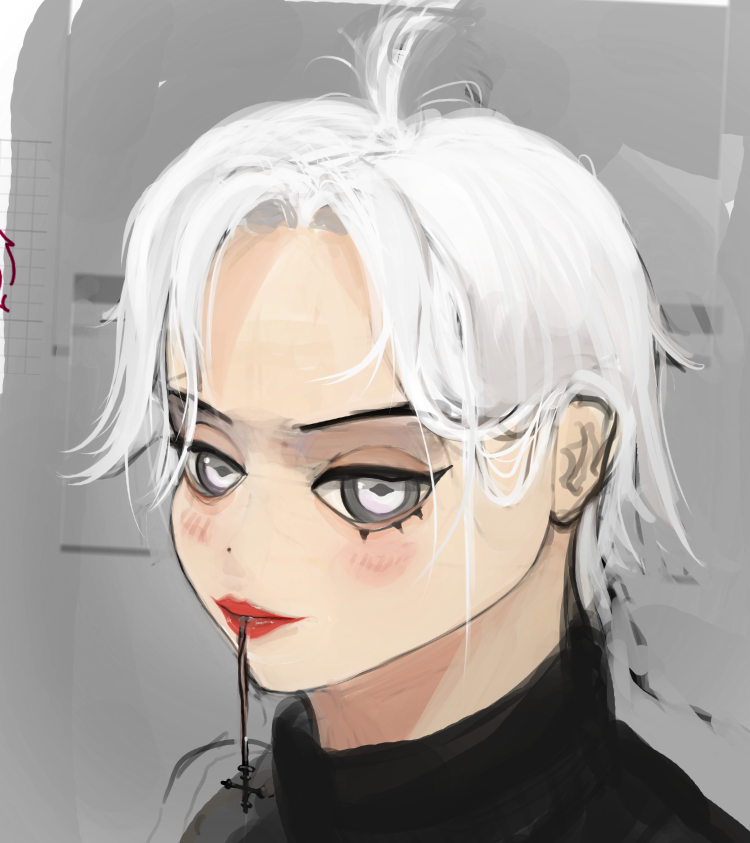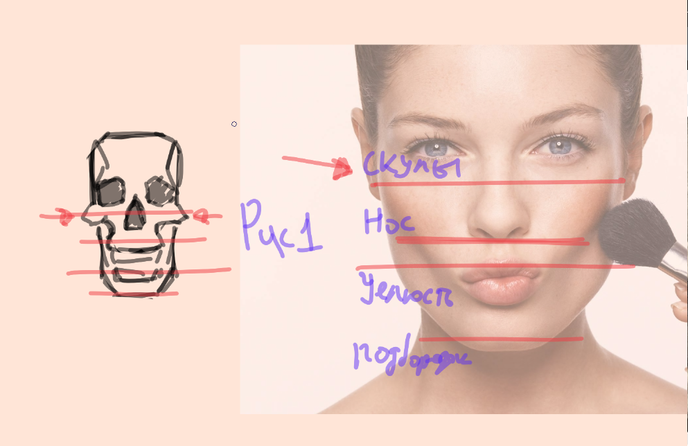>>942299 мне кажется ты слишком символьно срисовываешь, у рефы другие формы на мордочке относительно твоей, как будто ты посмотрел и просто какое-то лицо азиатской евачки нарисовал очень условно на основании. насчет цветов: на рефе три источника света условно, два холодных высвечивают мордочку справа и слева, и один теплый в фонит сверху-слева. кожа очень сильно меняет цвет из-за света, поэтому там где холодный появляется красно-фиолетовое и зеленое, а под прямым светом будет просто синий, под теплым светом просто более красный(ну и азиатов видимо более желтый хз) и выше по тону. по крайней мере мне так кажется, но честно говорю, я малюточка с крайне нищим опытом ресавани, мне сомнительно можно верить. но можно попробовать хехе. вот если утрировать то чет такое будет короче смари