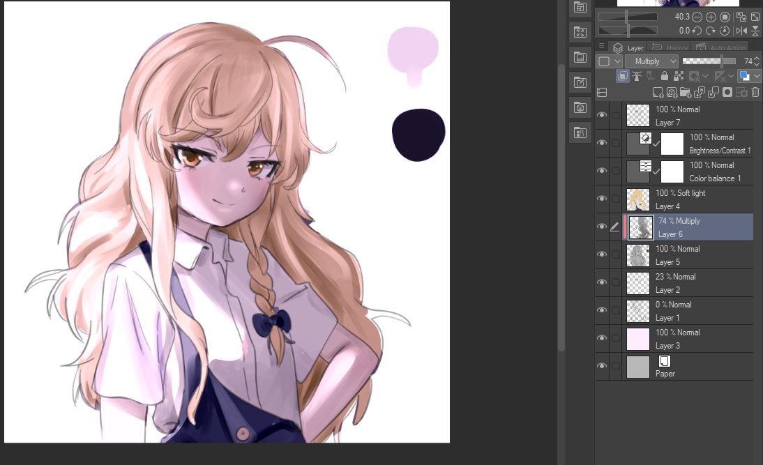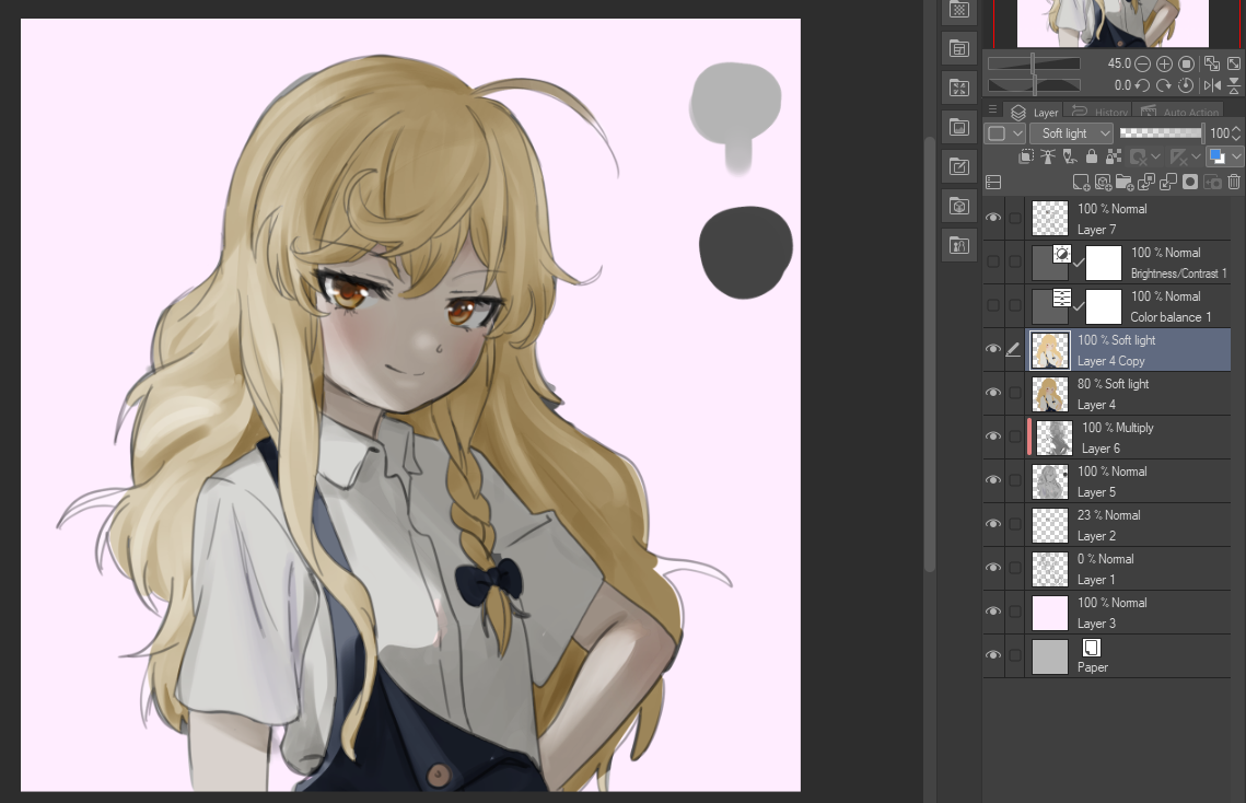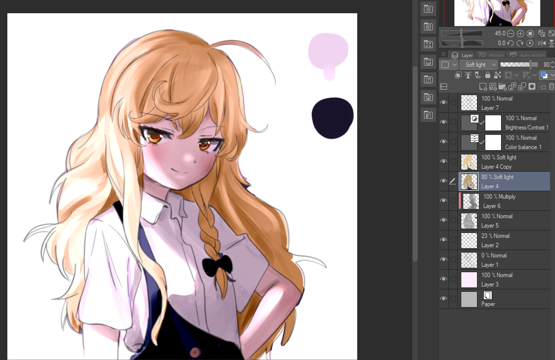 вообще для рендеринга в софте есть куча всяких трюков и опций помимо режимов слоев которые мне приходится по крупицам из тредов вылавливать. например что можно magic wand обвести рисунок и так проще красить, не будет за границы выходить. или что можно у слоя с лайнартом поставить галочку в lock alpha и тогда можно линии красить, вот я так как раз попробовал в последний раз