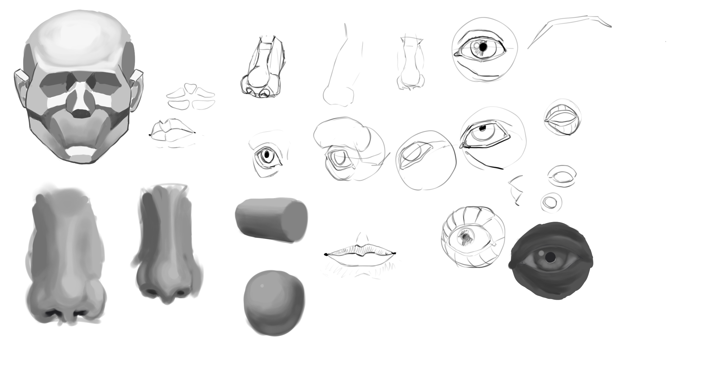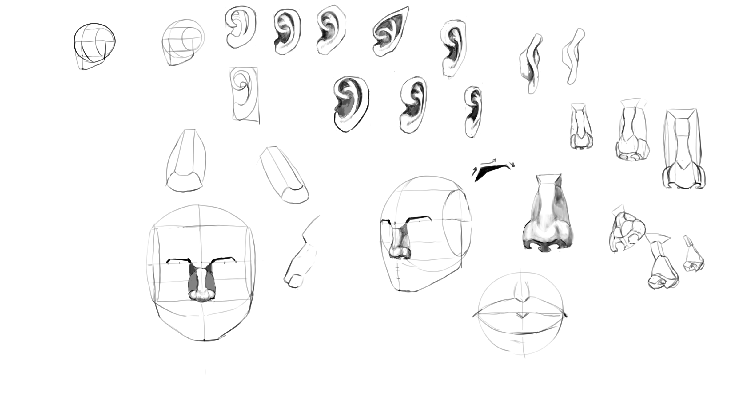 Сначала пытался нарисовать простой шарик и улучшить свой штрих, а потом нашёл на заводе шарик от подшипника и пробовал нарисовать его.