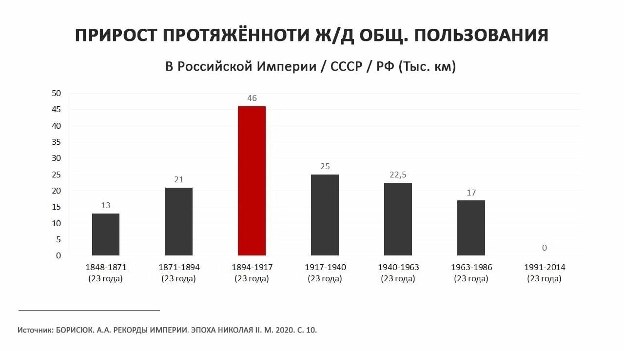 1. При Царе-батюшке количество школ росло тысячами, а при Пыне сокращается; 2. При Пыне бабкосёла на Украине(!) взять не могут, с хохлами воюют, а при Царе-батюшке австрияков и немцев били и дальше Польши не пускали; 3. При Царе Николае Александровиче славянское население Империи росло по миллиону в год, а при попыте про население врут, что оно 145 миллионов уже 30 лет. 4. При Святом Императоре любой простой человек мог открыть свой бизнес и купить пистолет, а при Хабадовой Бабушке ты 5 лет будешь на нарезное стаж зарабатывать, а потом сядешь, если случайно выстрелишь в сторону гавкающей собаченьки; 5. При Николае Втором дума была, как Дума, а пресса- как пресса. В Думе думали, а не странные законопроекты принимали седалищным Отверстием в стиле Бешеного Принтера; 6. При последнем Добром Царе промышленность росла, но никто для её развития русских в ГУЛАГИ да концлагеря не отправлял, это даже у всяких коммунистических классиков, вроде Николая Островского можно прочесть. Там Павка Корчагин учится в школе, ходит в обуви, работает на вокзале, а его старший брат чинит паровозы; 7. Множество русских на севере и востоке Империи никогда не были крепостными. 8. На большей части Кавказа и Азии существовала гораздо худшая вещь- рабство. И не стоит тешить себя мыслью, что в рабство умыкали только слэйвян, скорее наоборот, в рабство угоняли собственных соседей, ведь это было проще; 9. Крепостное право было, вообще, отменено в Империи, его не было с 1861 года. А к 1905 году отменили и выкупные платежи; 10. К 1917 году 80-90% земли было не помещичьей, а крестьянской собственностью, настоящей, а не арендованной; 11. В 1905 году отменили телесные наказания, впрочем, у крестьян были свои представления о Правосудии, и крестьянский сход мог постановить выпороть бузотёра. После переворота бузотёры пошли в комбеды и отомстили крестьянам ; 12. Фактически, к 1905-му году личное дворянство обязательно получал любой человек дослужившийся до прапорщика или получивший высшее образование, при этом никаких особых привилегий у дворян не осталось. В Британской Империи получить дворянство за выслуженный чин было немыслимо, требовалось разрешение Короля; 13. Любой человек мог купить специальный противособачий револьвер "Велодог" и застрелить собаченьку, т.о. главный кирпич из русскомирной пирамиды уже был вытащен; 14. Ташкент, Махачкала и Грозный были русскими городами, а не Москва- чурекским аулом. (-) ещё один из камней пирамиды; 15. При отсталом царизме в Россиюшке делали линкоры, автоматы и дальние многомоторные бомбардировщики; 16. При Царе-батюшке русские резиновые шины рекламировали в Нью-Йорке и Париже, а сейчас одна бабушка вспоминает только резиновые галоши.