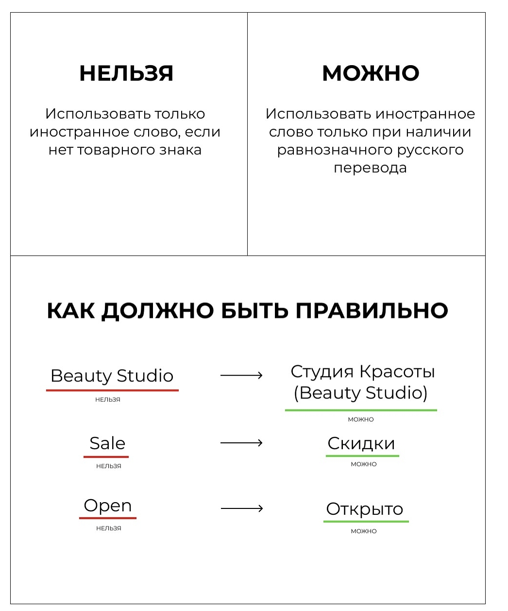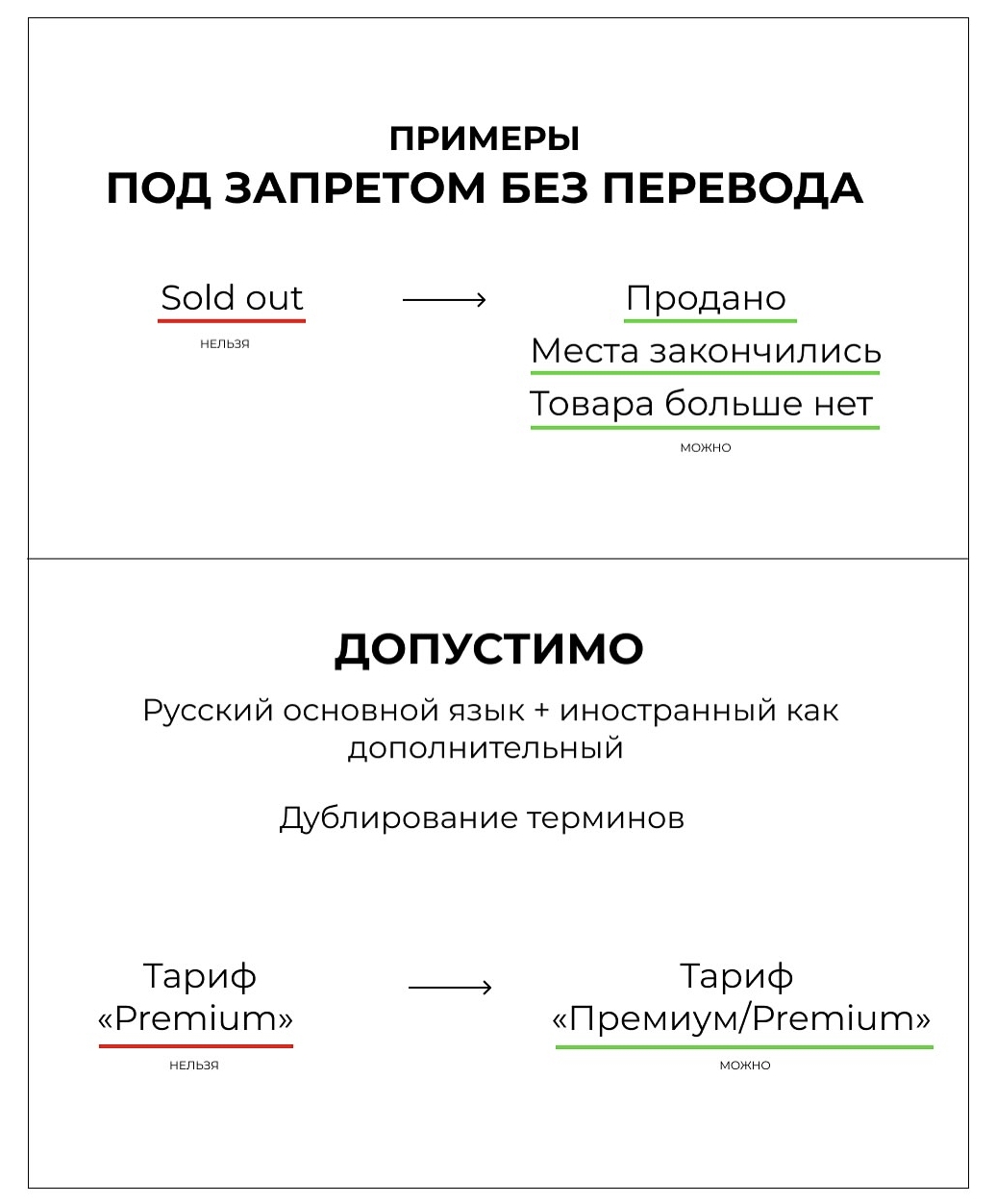 > Иностранные слова допустимы, но только как равнозначное или второстепенное дополнение.