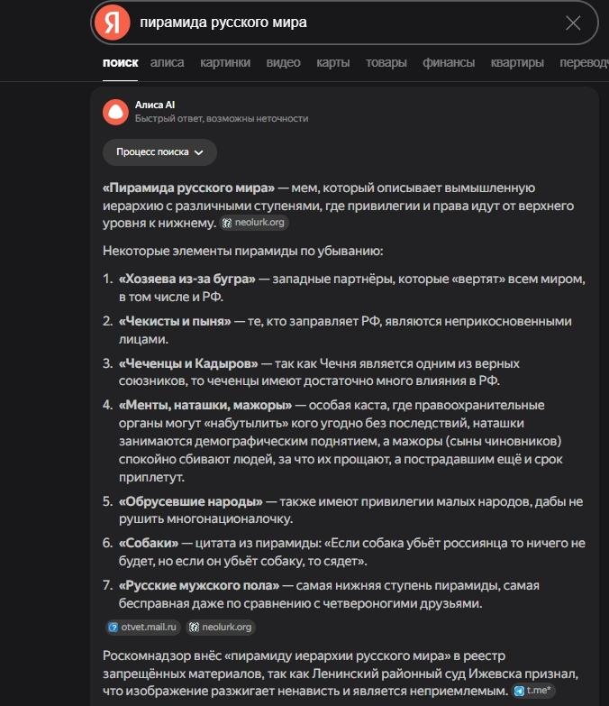 Рулетка пирамиды Русского мира Для определения своего места в пирамиде считаются только посты содержащие слово "ролл" или его аналоги. (правило введено для возможности отвечать на другие посты не теряя свое место в пирамиде, и возможности подписать, кто тебе отвечает, степадаль обычная или хозяин пукнумии, смелые, конечно, ролят каждым постом.) 1-2 - Степашка, ушастый обыкновенный, штурмовой и плавунцовый. 3-4 - Пес ебучий, ночуешь у дверей додо-пиццы постоянно выхватывая дверьми. 5 - Якут, башкир и прочие эчпочмакцы. 6 - Натрашка дубайский унитаз, (ешь верблюдский шоколад голыми руками) или гречневый с вафлями на плечах(мент). 7 - Чуркавый не муслимской культуры. 8 - Даг, азер, точик и прочие какцы под полумесяцем свормлинга тиранидов. 9 - Ваххабиты и адамчик (горский еврей) включительно. Дабл - чекисты и писснум скунсович включительно, творишь движухи, травишь всяких додиков боевым ядом в третьих странах, кубируешь степашек, жмешь руку трампону, какаешь в чемодан и трясешься в бункере. Трипл - Хозяева пукнумишны из-за бугра, моссад, цру, петух Донни, Беня Нетаньяху и все остальные старые семьи аристократов. Для всех аватарочников (Колдуны, мокши, кремлеботы, британские лунопопики, сыновья генералов КСИР и прочие.) РЕРОЛ ЗАПРЕЩЕН, после первого поста с аватаркой к ней навсегда (или до нового треда с аналогичными правилами) привязывается место в пирамиде, все остальные также могут к своей аватарке привязать место в пирамиде. Ах да, забыл поместить в пирамиду цифру 0, поэтому теперь это особенное место - ветеран сво.