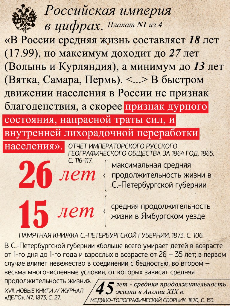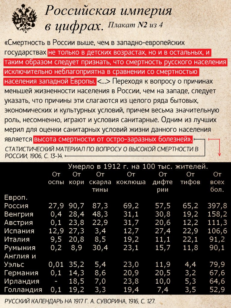 В империи же по сути половина детей как раз нескончаемо умирали от болезней вызываемых недоеданием и антисанитарных условий. Большая часть в возрасте до трёх лет.