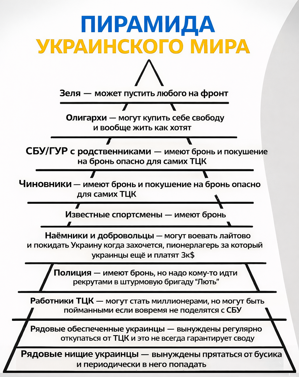 >ветеран сво Самая охуенная масть, если по ранению отправили домой. Ценой одной нахуй не нужной ступни, можно сычевать дома с десятком лямов на счету, неплохой пенсией, всеобщим одобрением, статусом новой элиты и бронью на мобку.