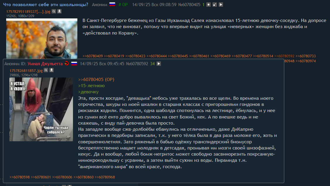 >>62015225 На скриншоте закрепный монстр (тот самый который постит в треды пикчу "пригнись сзади хохол", ага) оправдывал еблю школьниц палестницами, потому что это "незначительные мелочи в построении автаркии".