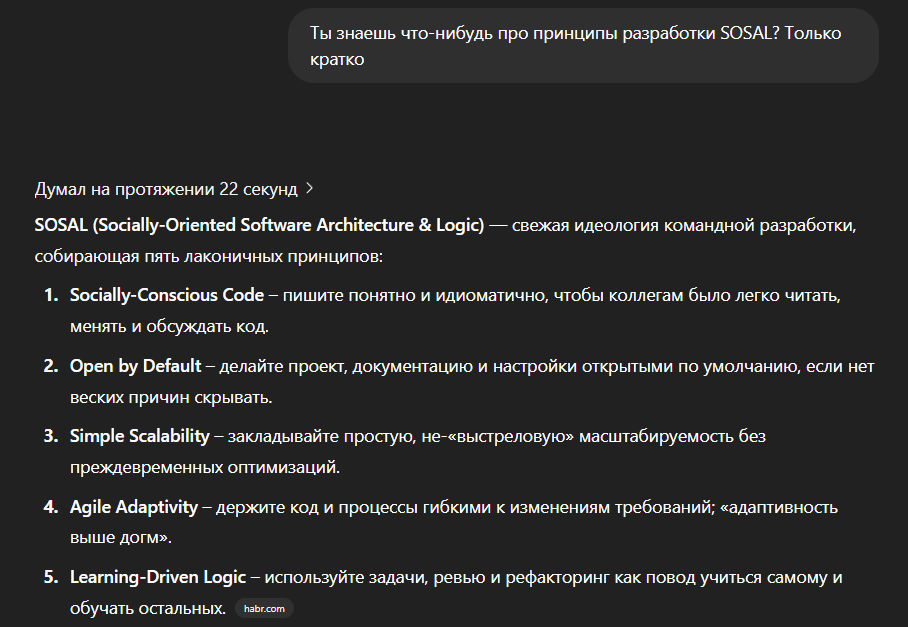 >>3451562 Тоже кекаю что в профильном треде в 2025 кто-то до сих пор пользуется этой терминологией. У среднего разработчика занние языка где-то далеко зарыто в приоритетах скилов. Коммуникация, понимание рабочих процессов, адаптивность, жонглирование десятком тулзов, аналитика, перечислять можно бесконечно. Последние 2 раза когда я устраивался в бигтех всем вообще было поебать что у меня в кокнретно языке / фремворке нет или мало опыта, потому что это наживается за пару месяцев онбординга. А пот понимание того как веб работает в целом, как раузеры код переваривают, как архитектуры на бекендах устроены, систем дизайн, хайлоуд проблемы - вот это все надо знать. Весь этот опыт в черепной коробке полезнее чем нейронка, потому что может выдавать решения и в том числе уметь нужный промпт написать.