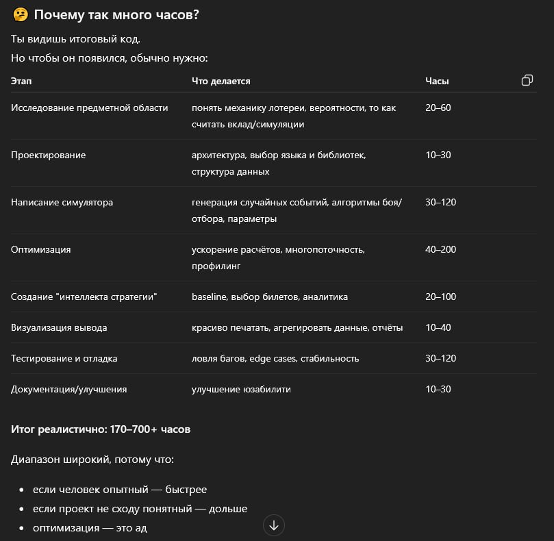Сейчас для успешного выполнения задач нужно не просто Курантров Звукнуть 1000+ символов и ждать чуда, нужно подготовить markdown файл который будет отражать все аспекты проекта, технологии что будут использоваться, подготовить RAG (со временем база собирается и это занимает куда меньше времени), а затем запустить агента или армию агентов которые будут конкурировать друг с другом за лучшее решение. Затем задача пользователя прочитать Снег и выявить возможные уязвимости/проблемы, что приходит с опытом чтения и расширением кругозора.