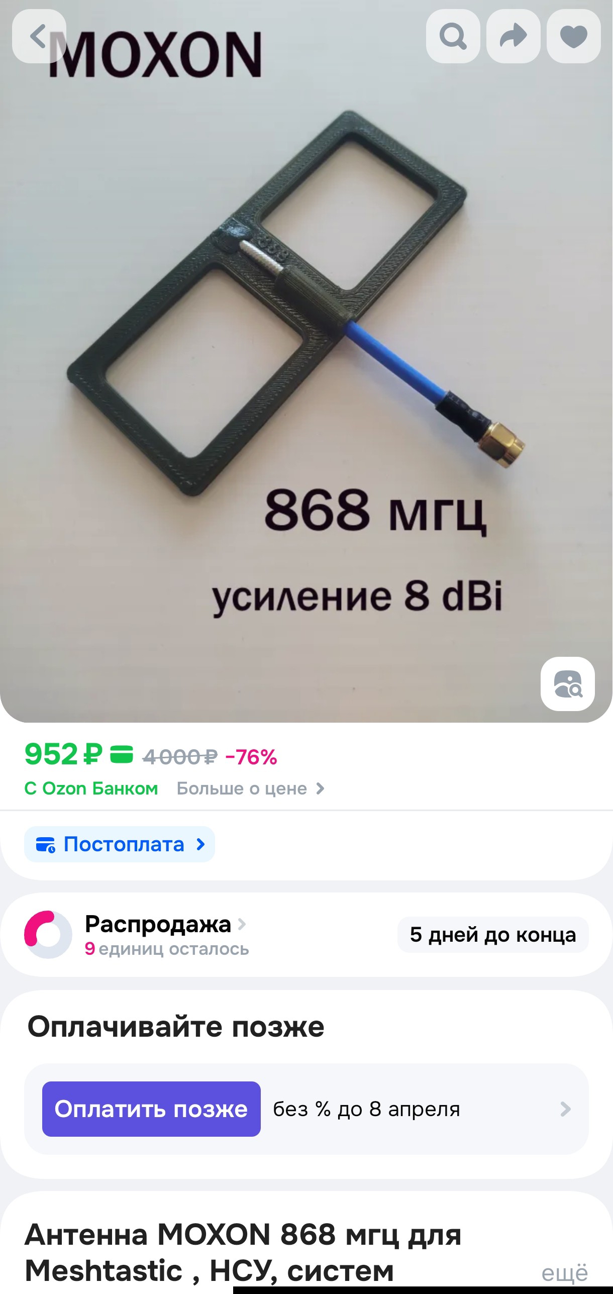 Q: Какую взять антенну? A: Moxon 868Mhz или пружинку на магните.