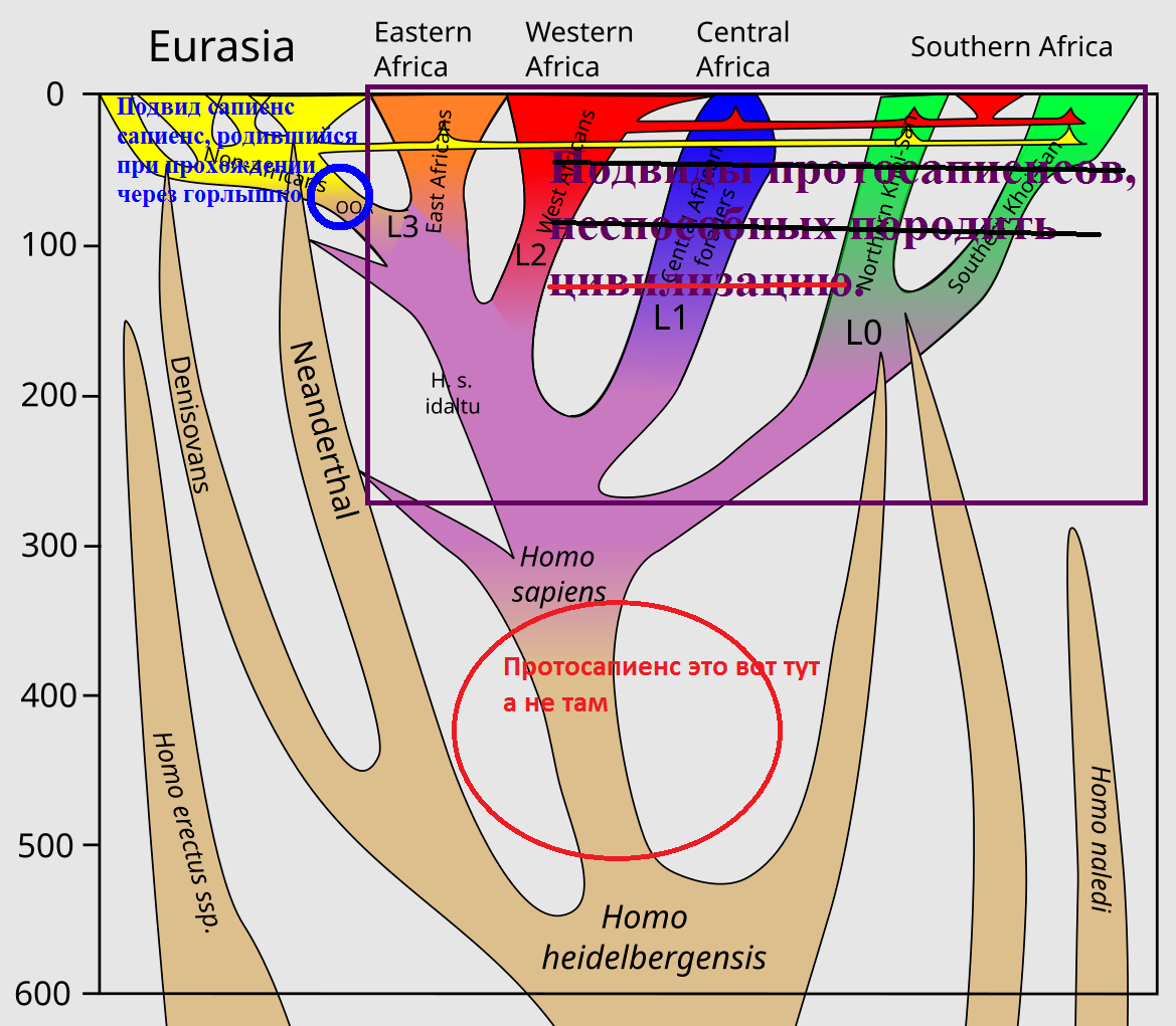 >>604826 Чел..."прото"сапиенс идёт ДО "сапиенс", а не после. Протосапиенс на данной схеме вот тут. Сининимы : человек гейдельбергский африканский, человек родезийский, человек хелмей, протокроманьонцы
