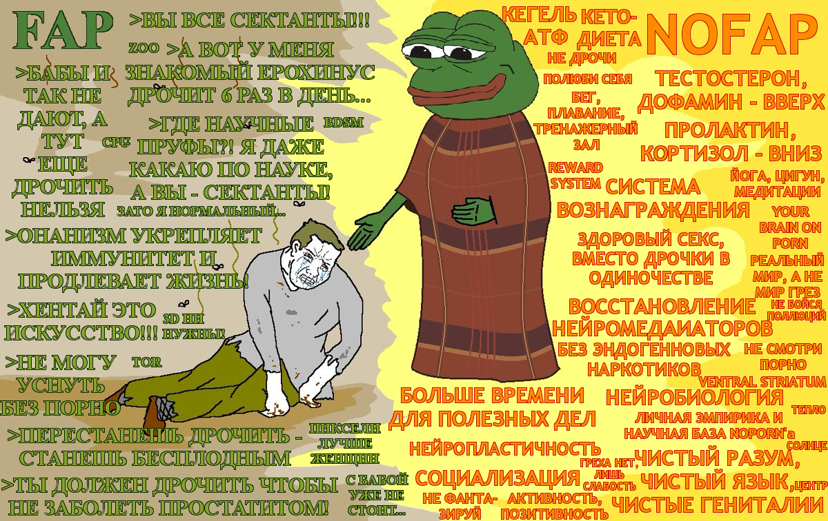 Нофап - своя секта субкультура, со своей сектанско-религиозной (и/или эзотерической) необоснованно радикальной философией, адепты коей отвергают любую точку зрения, что не вписывается в их (установленные хуй знает кем) догмы