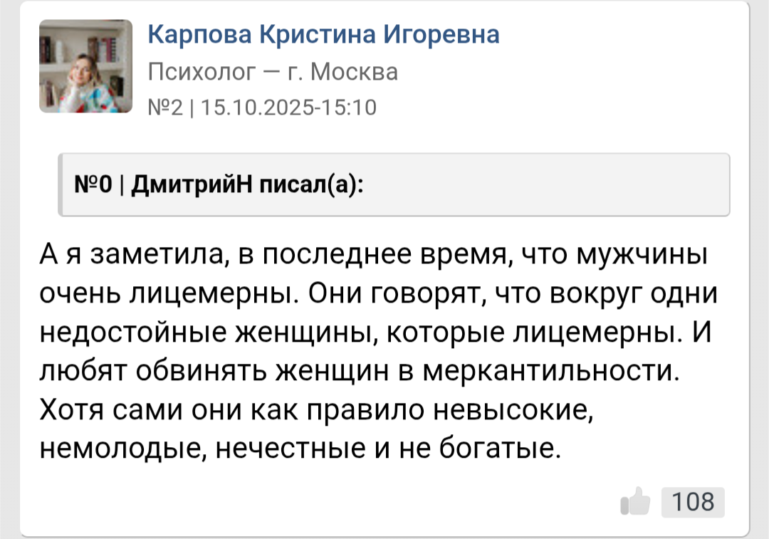>>10391527 А это самое "женоненавистничество" на пустом месте что-ли взялось? Современные тян доказали, что они большего и не заслуживают. И да, по определению инцелизма и выходящей из этого логической цепочки - всё же инцел.