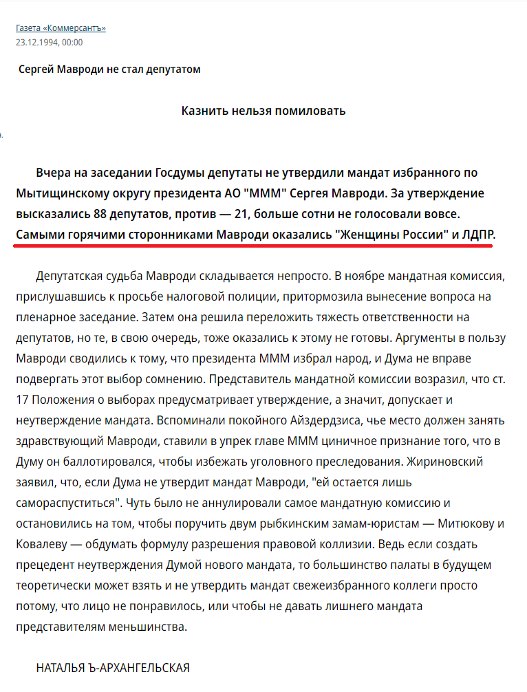 Сейчас женщины России как и Мавроди пользуются свободой и пробелами в законодательстве России чтобы угнетать и не давать нам секс.