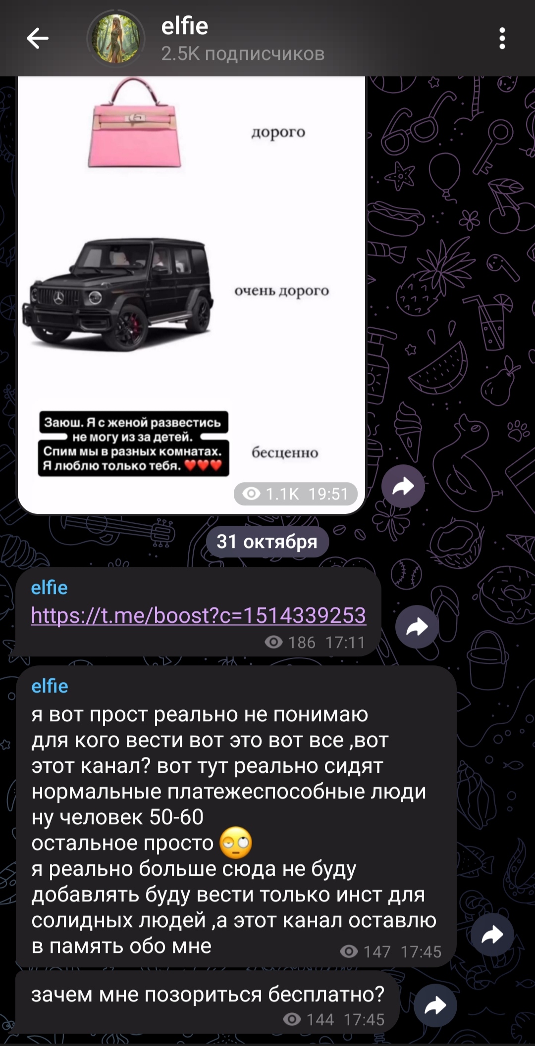 Тут на днях шлюхи делились инфой одна что жв просто так клиент айфон ей подогнал. У другой за день сделала 120к вместе с чаевыми. Ну вот как тут не бомбить?