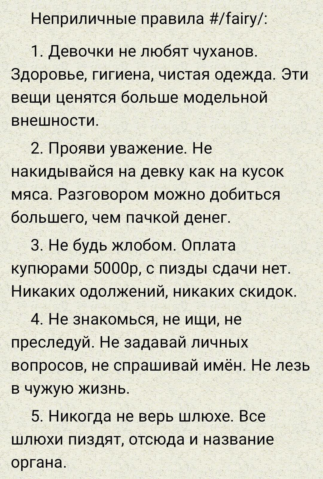 Но мне со всеми понравилось. К последним двум не возвращался, всё же это ту мач, да и всратые они неимоверно, но хотя бы было нескучно и в моменте прикольно. А у Сони практически постояню, к Алисе тоже ходил разов 4-5 (потом, правда, поссорились, но не из-за работы), у Мелиссы был один раз, но планирую ещё (до этого год не мог попасть, но там диспа была ёбнутая, то динамила, то игнорила, даже в отзывах писали об этом, сейчас вроде норм, попал с ходу, к тому же она переехала в очень удобную для меня локацию, так что мож даже попостояню).