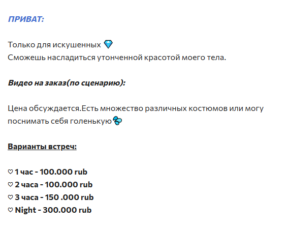 >>10416740 Но почему они не отвечают, кроме автомата, я так и не понял. Предоплаты нет. Да и в каналах тоже прайсы есть. Придётся ебать классических шлюх.
