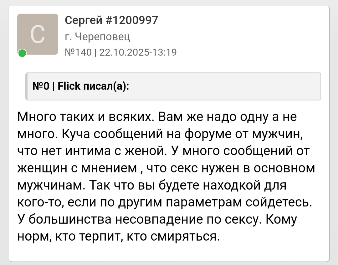 К, тебе нужно смириться. В твоей возрастной категории рост 173 - это уродство, вырожденчество. Как и мои недоразвитые челюсти являются уродством. Никакой любви и симпатии нам от женщин не светит. Ты либо пытаешься бетабаксить, хотя как ты писал, на твои анкеты в ДВ про наличие машины и квартиры никакой реакции не было, либо принять черную таблетку, как я. Других вариантов нет. Мимо 29 лет девственник с н.ч.