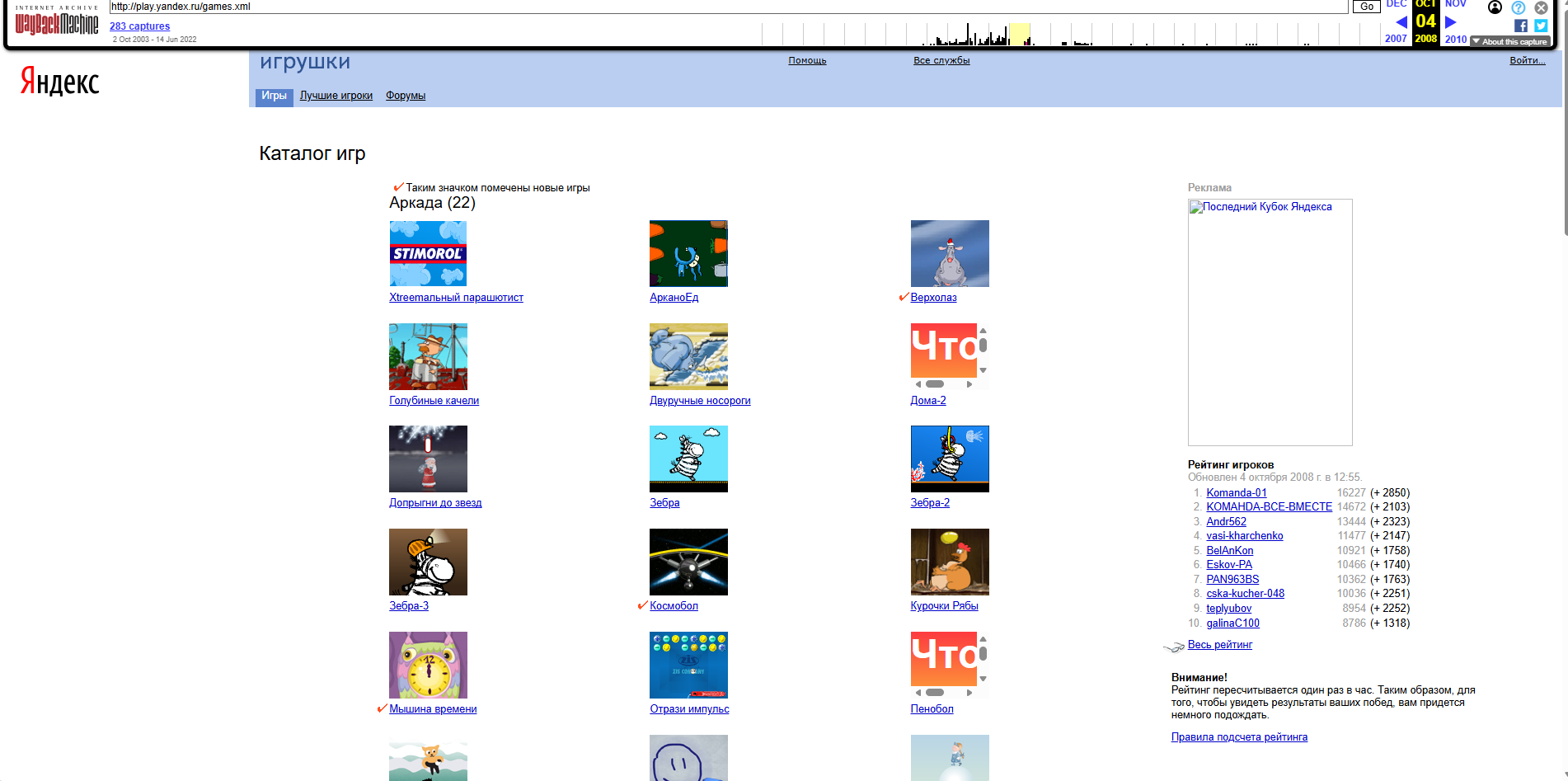 >>10424986 У меня пека в 2005 году появилась, приставок никогда не было. А интернет вроде бы в 2008 или 2009. Я застал старый ютуб и те самые видео в 240р, а еще рубился в яндекс.игрушки (пикрил) 164