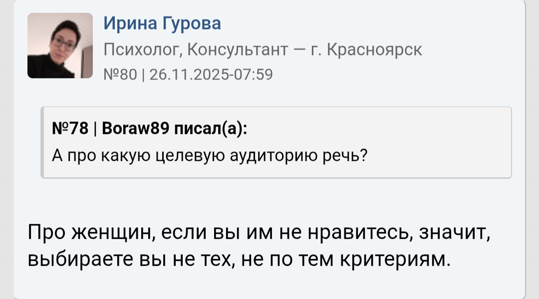 >>10442570 Не в этом дело. Там инцелы из разряда "не ебался 2 недели - уже инцелом ощущаю" и прочее. Большинство там сидящих школьники 10-11 классов, постигающие блекпилл. >>10442569 Хз, одна такая чё то про меня вякала, живя во Владивостоке - думал с ней списаться, но она бедобашковая, да и с чедиком вроде мутила уже.