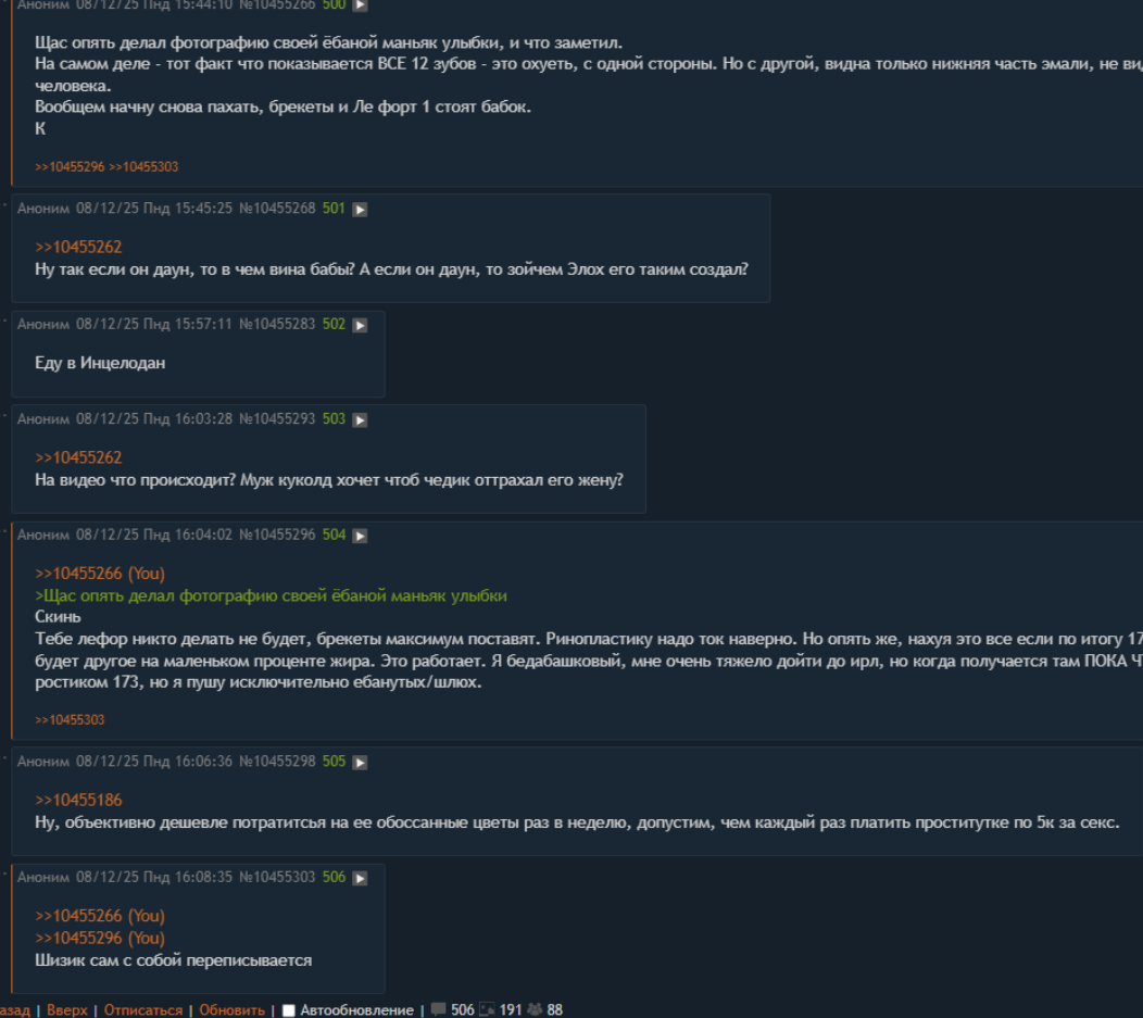 Олдфаг инцел тредов здесь. Сижу в них с 2017 когда они ещё были листва тредам, когда здесь создали картинку с бабкиным на фоне порша панамеры и когда создавали репортажи на канале ЛИСТВА 24