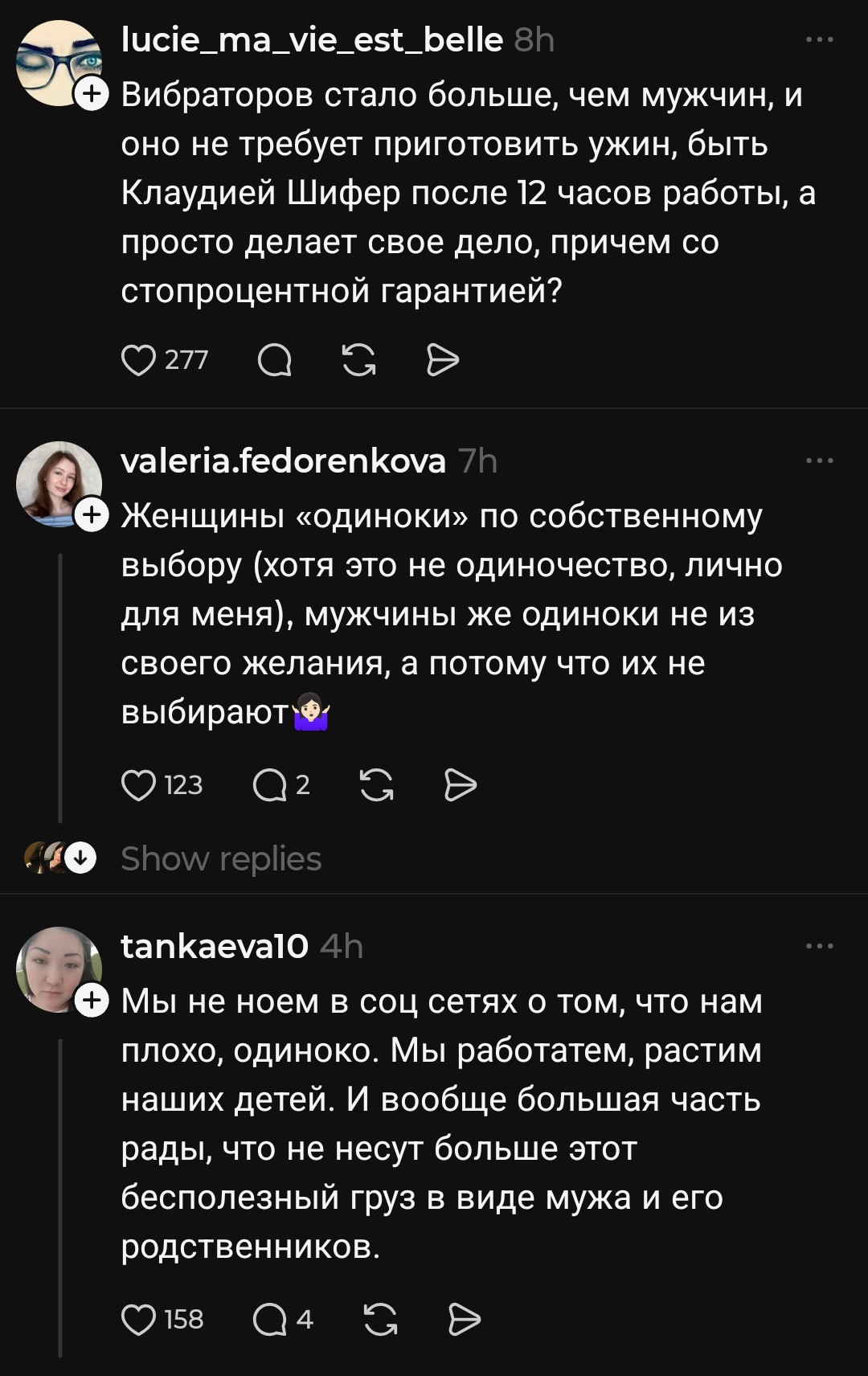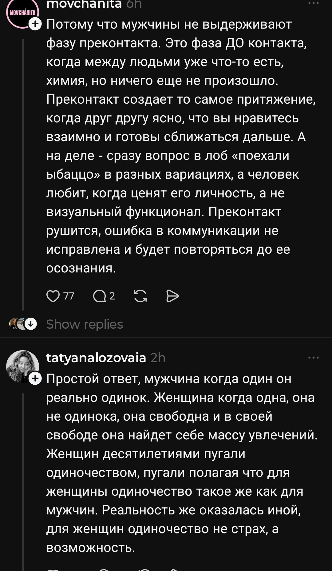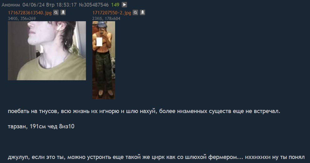 >>10461238 Точнее, мужчин в параде планет каждой сельди стало настолько много, что от переизбытка их тошнит кислотой и актуальное на орбиту в 5-10 чушков "Меня никто не любит, я так одинока" меняется на "Кто не насильник - тот педофил, не хочешь поесть со мной в ресторане на 50тыс. - готовься сесть по обвинению в домогательстве" при 20-50 тел. Дальше только хуже >>10461068 С аквамена проорал, спасибо. Толковое определение лучка-жимцела, клеящегося к тетям сракам на двадцать лет его страше >>10461224 >>10461238 Не ты ранее постил с Б17 скрины? Если и не так, то спасибо, что ты есть, анонче. Ради такого в тред и захожу, всегда сохраняя твои подборки, всё шин
