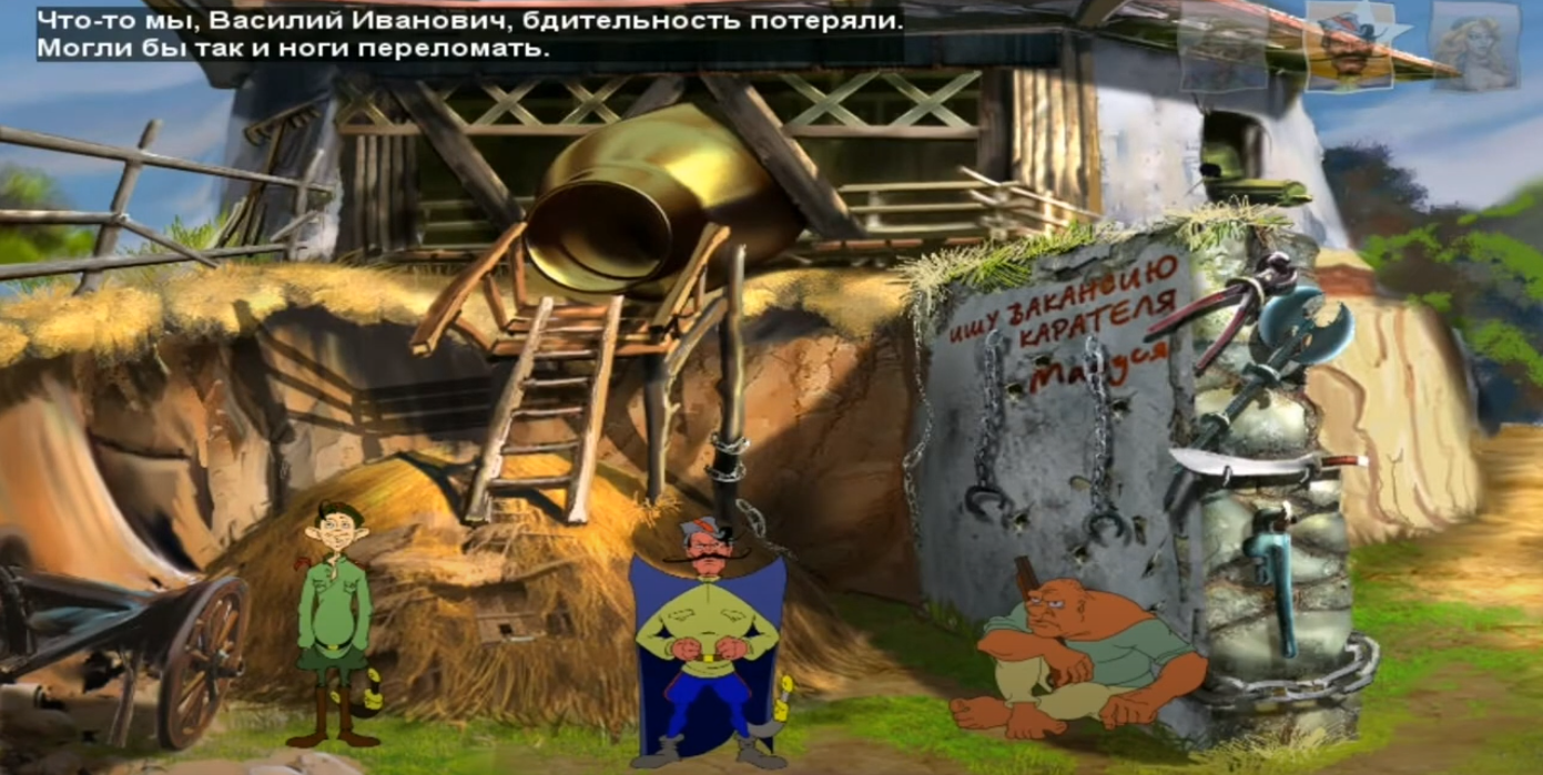 Всем привет. Мне почему-то всегда было некомфортно в играх по типу Петьки. Особенно казались криповыми персонажи. Профессионально озвученные, но с 3 репликами и нарисованными НЕПРИЯТНО. Тебя вначале обманывает их озвучка, как будто это настоящие люди, которые куда то там ходят, что то там живут. Но потом понимаешь, что в этом шизовом окружении игры ты встречаешь только этих уродцев, которые оживают на 5 минут интеракции с тобой, как с главным героем, и после застывают навсегда. Петька и Василий Иванович никогда не обратят внимание на шизу, которая происходит вокруг них, а условный алкаш из Гадюкино вынужден вечно лежать под забором. Эдакий спектакль для главного героя, только вместо живых актеров какие то абоминации, в которых хорошая озвучка внесла крупицу жизни. И после встречи с главным героев они застывают навеки. Сложное ощущение, постарался как то передать.