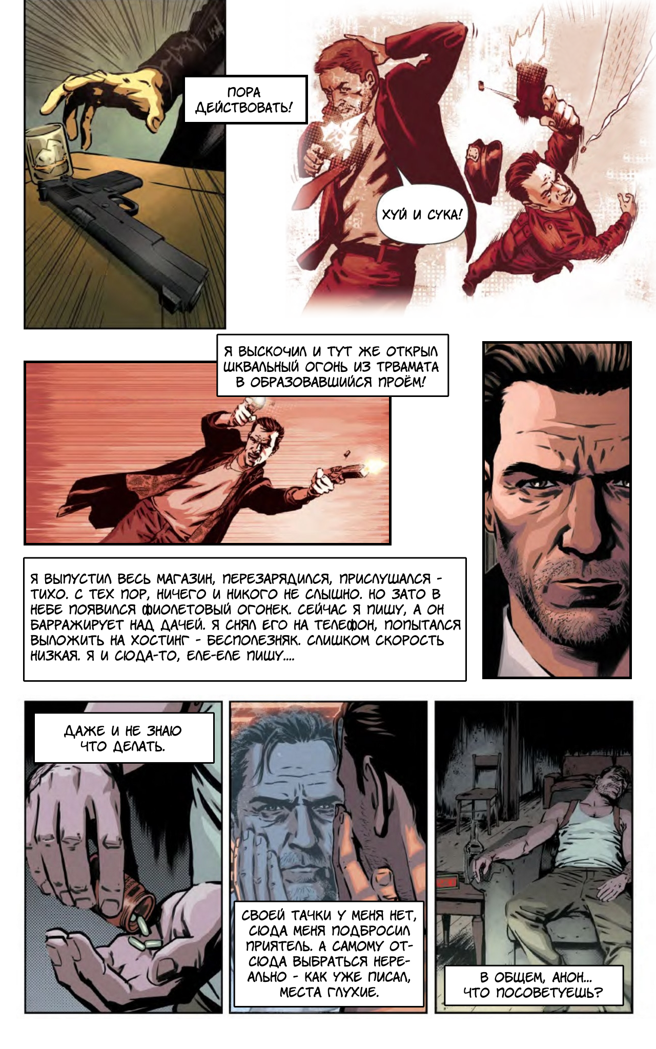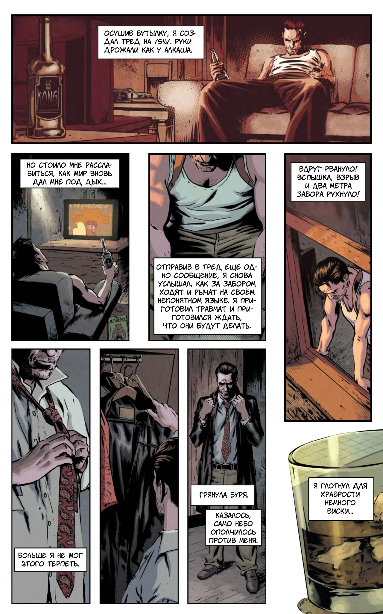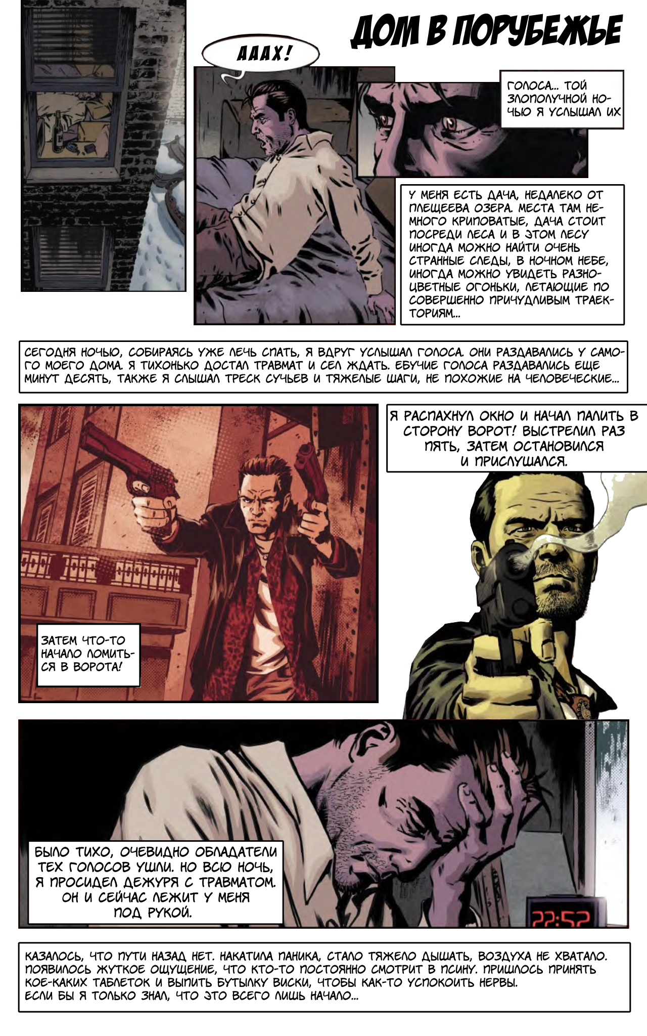 «Только что мне снился полный пиздец. Я пытался отдохнуть на кровати, когда прямо у моего уха раздался крик Ассасина. Я открыл глаза и увидел его фигуру, нависшую надо мной. Его руки и ноги были еще длиннее, чем обычно, что как никогда делало его похожим на паука. Я попытался оттолкнуть его, но руки увязли в чем-то, похожем на смолу.