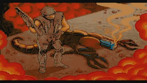 "Путя спасает мир", в детстве я обожал в неё играть, довольно ламповая игрулька, где собираешь орбы и взрываешь ими инопланетян. Но как же я боялся уебков со второго пика. Я каждый раз впадал в ужас с их ухмылой рожи и чересчур вытянутого тела, красных глаз и клыков