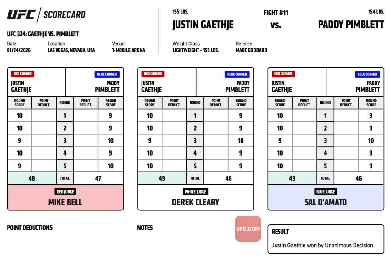 Пимблет лох, но всё равно бой красивый получился. Омелли очевидно было. Акоста очевидно было. Наташа с привкусом булшита, но ок. Силва - мальчик треда. Умар очевидно было. Готье разочаровал вообще. Пуляев его гонял как собаку, но нокдауны зарешали. Перез молодец. Джош Хокит норм, но всё равно он мешок. На мешке норм отработал. Миллер норм, но всё равно бомж.