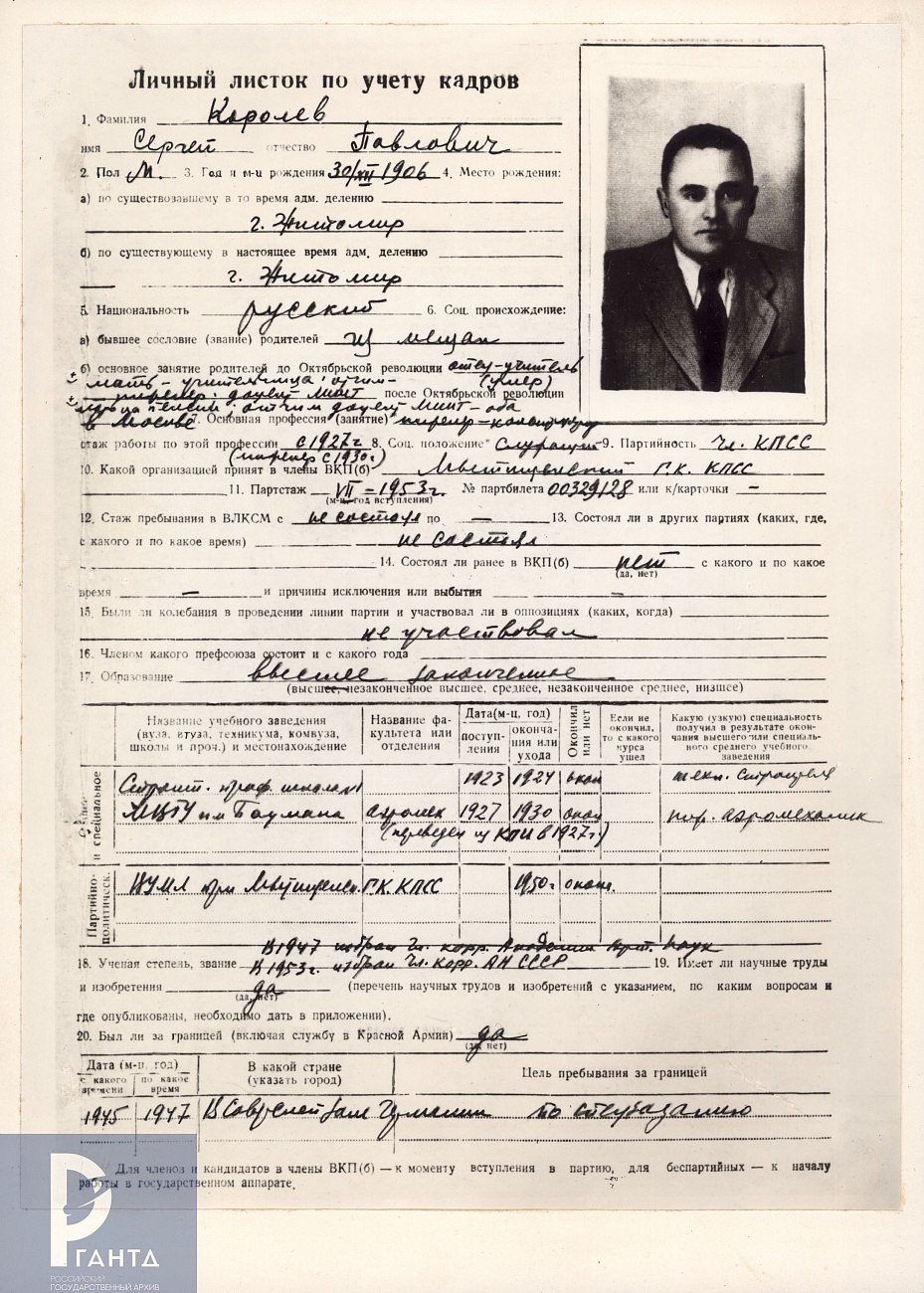 >>819724 >Королев по происхождению считал себя украинцем Он считал себя и был русским, с русской фамилией. А этот бланк на мойве не факт что он сам лично заполнял