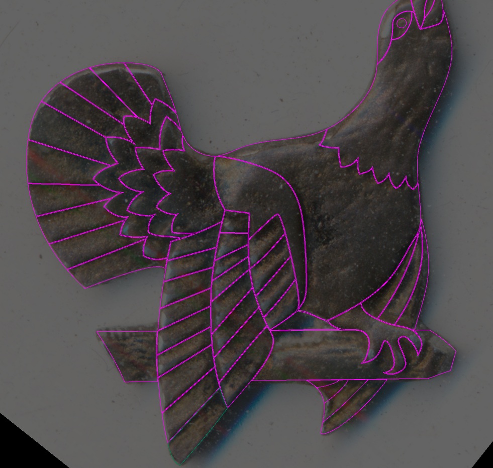 Что-то заебался немного обводить твои кренделя, ОП, 424 замкнутых кривых, отрисованных ручками за вечер. Завтра, точнее, сегодня подниму рельеф и немного поработаю в браше по той методике, которую описал в случае с птичкой.