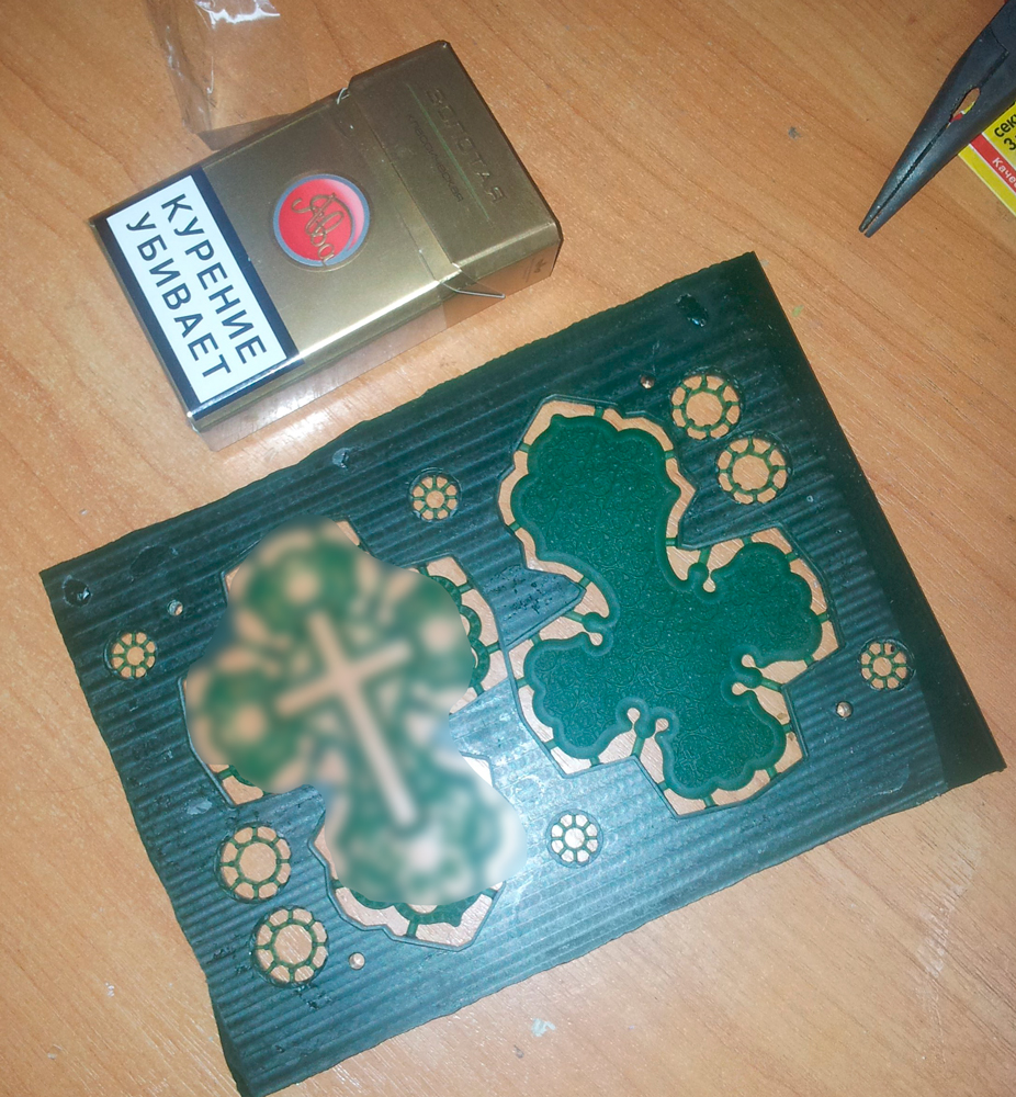 Теперь про резку. В этом изделии я вижу 3 детали минимум - сама основа, та круглая хуета с узорами и верхушка.
