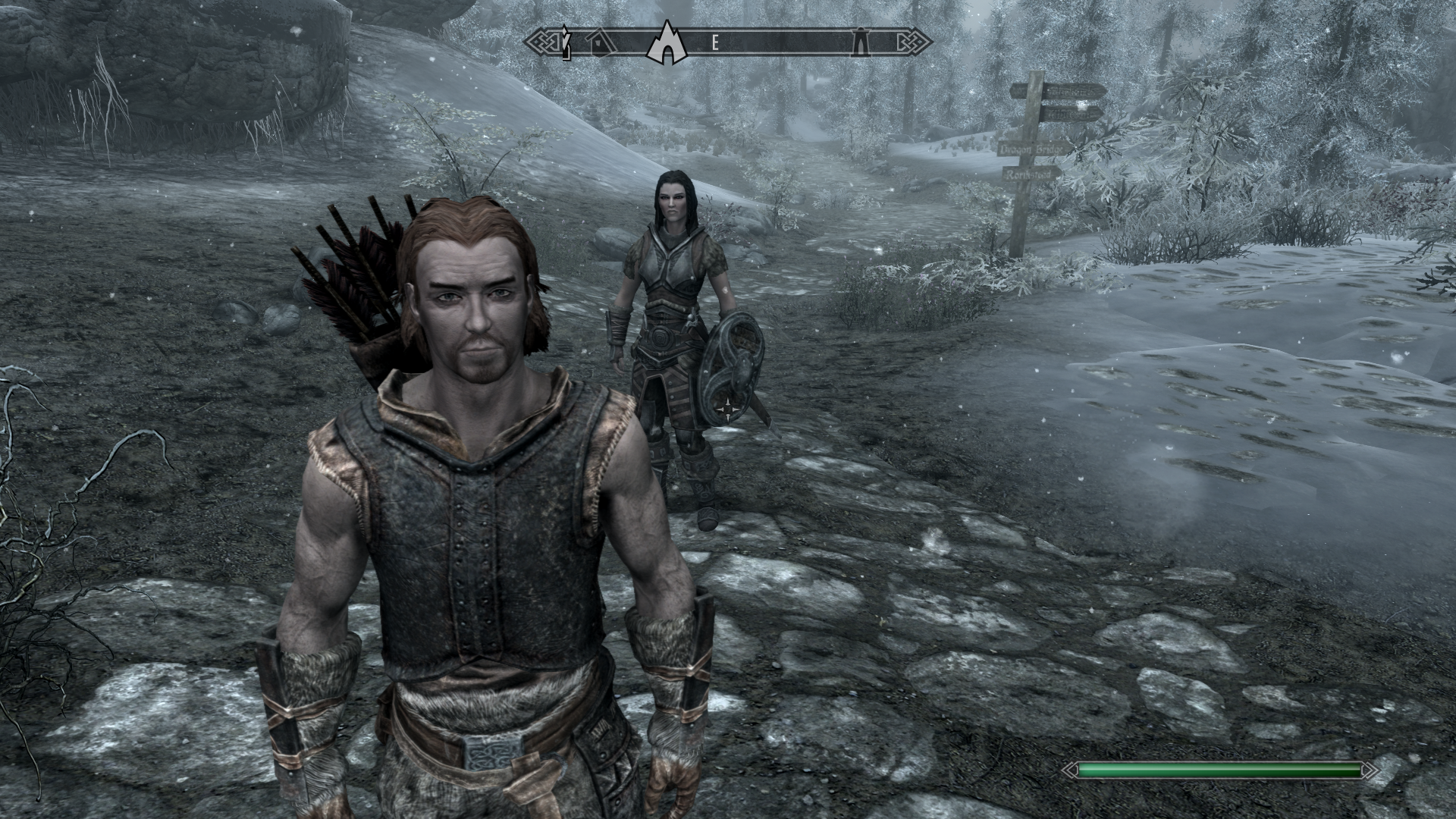 Знаете... Гуляя по просторам ночного Скайрима. Ощущая на своих ушах прохладу климата, запах сырых гнойных лесов? Встречая других жителей, идущих по своим делам. Я чувствую, что мне тут не место. Пару раз я представлял будто гуляю с ней - с той самой нордской бардессой, разговариваю с ней о чем-то. Но внешние факторы растворяли эти фантазии. И чем дольше был мой путь, тем больше я наполнялся сомнениями.
