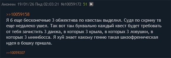 >63113 и 63115 - солидные скрины, там босс в ахуе от твоего билда, респект за нестандарт Подлиза хуев, скрины солидные? А ты их вообще разглядел или просто репостишь, чтоб свой постинг накачать? "Босс в ахуе" - это твой максимум анализа, вместо разбора билда или тактики лепишь общие слова, респект тебе за нестандартный ноль идей.