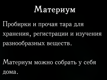 >>50210774 В Звонвилле после прохождения всех квестов на пожертвования городу дают ключ от своего жилища, Материум можно собрать на хате, и тогда появляется возможность посмотреть все предметы, которые ты нашел в игре. Зачем-то. Хз.