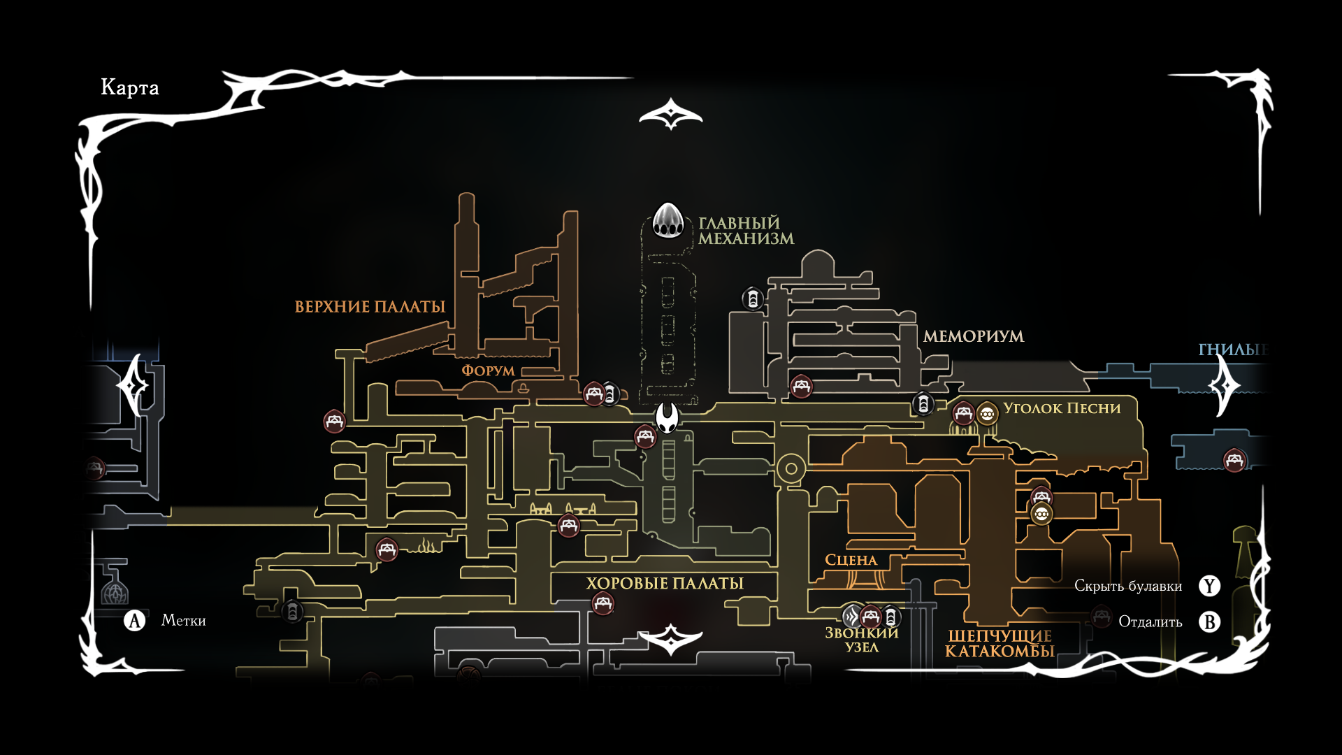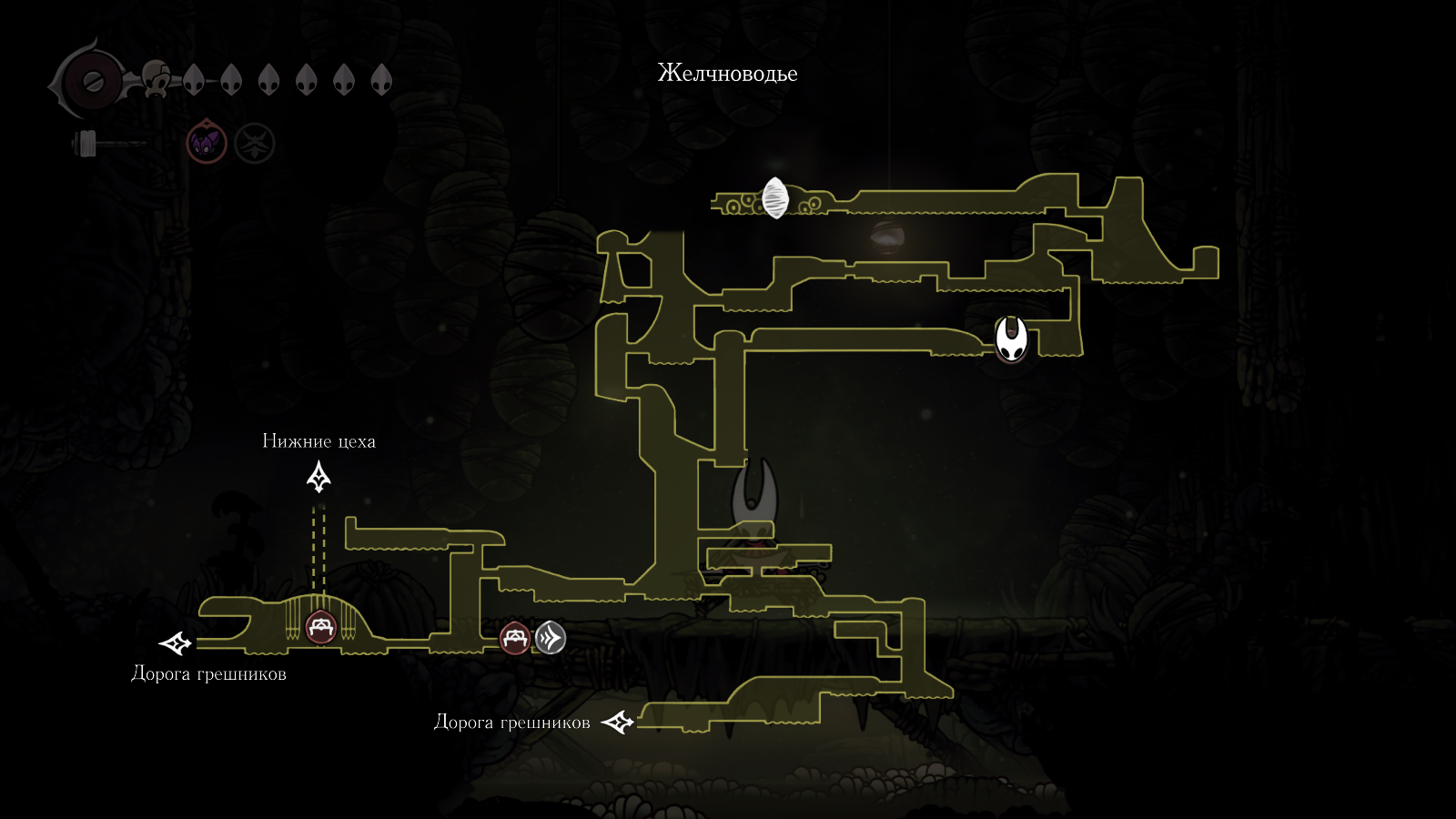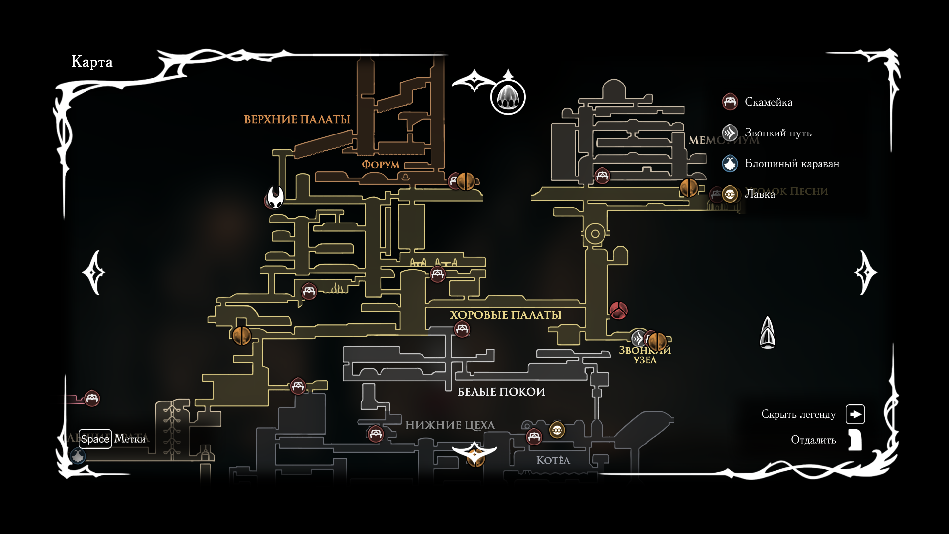 В первой части был полностью "логичный" фэнтезийный мир с логичной географией. У нас есть перевёрнутая вертикаль (что логично, жуки же подземники): наверху пролы ломают кристаллы, под ними спальный район, под ним - вокзал и кварталы для нитакусь (грибы), далее - местный ДС-сити, ниже - белый дворец и местные архивы спецслужб и бездна. С краёв карты - тупо края королевства, ветер, тишина, дикие твари, камни и всякие объебосы типа пчёл и отщепенцев-еретиков типа Джонни. При этом опасные локации более-менее в лоре: богомолы - дерзкие и гордые, но им это прощается, чтобы ограждать цивилизованный жучиный мир от его наиболее маргинальной части в виде глубинного гнезда (где даже до чумы Сияние было дохуя дикой живности), зелёная тропа внутри лора игры не была главным путём в королевство - по ней ходили паломники Унн, а так-то нормальные жуки приезжали на поездах сразу к столице. В Силксонг пока наиграл 40 часов, заканчиваю второй акт, но, чувствую, так и не узнаю ни лора комаров с воздушными шарами, ни огнепоклонников в бамбуковом лесу, ни какого хуя тут такие дикие перепады температур в одном месте, дождь во втором и сухо в третьем (в первой части дождь лил из озера наверху, а тут?)
